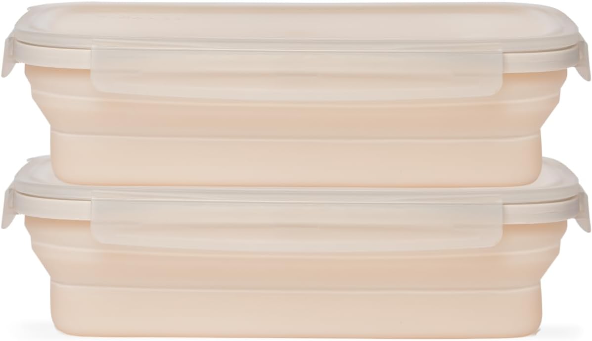 Drip EZ Secondz Collapsible Food Storage Containers – Set of 2, Space-Saving Airtight Meal Prep & Leftover Containers – Microwave, Freezer & Dishwasher Safe, BPA-Free, Locking Lids – Sandstone