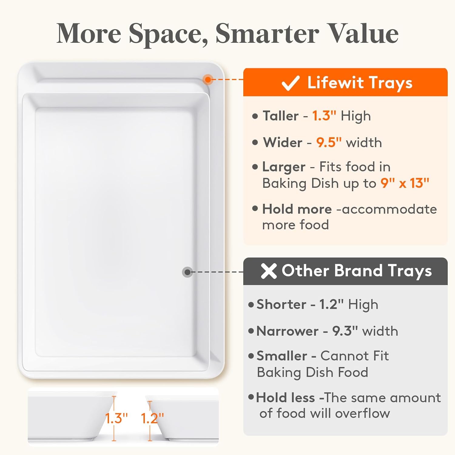 • Large Capacity for Multiple Foods: Set of 4 trays (inner size 13.5" x 9.5" each) with 1.3" raised edges to keep food secure. Perfect for hot food below 70°C, vegetables, fruit platters, desserts, sandwich, charcuterie, burger, BBQ or even a full party spread