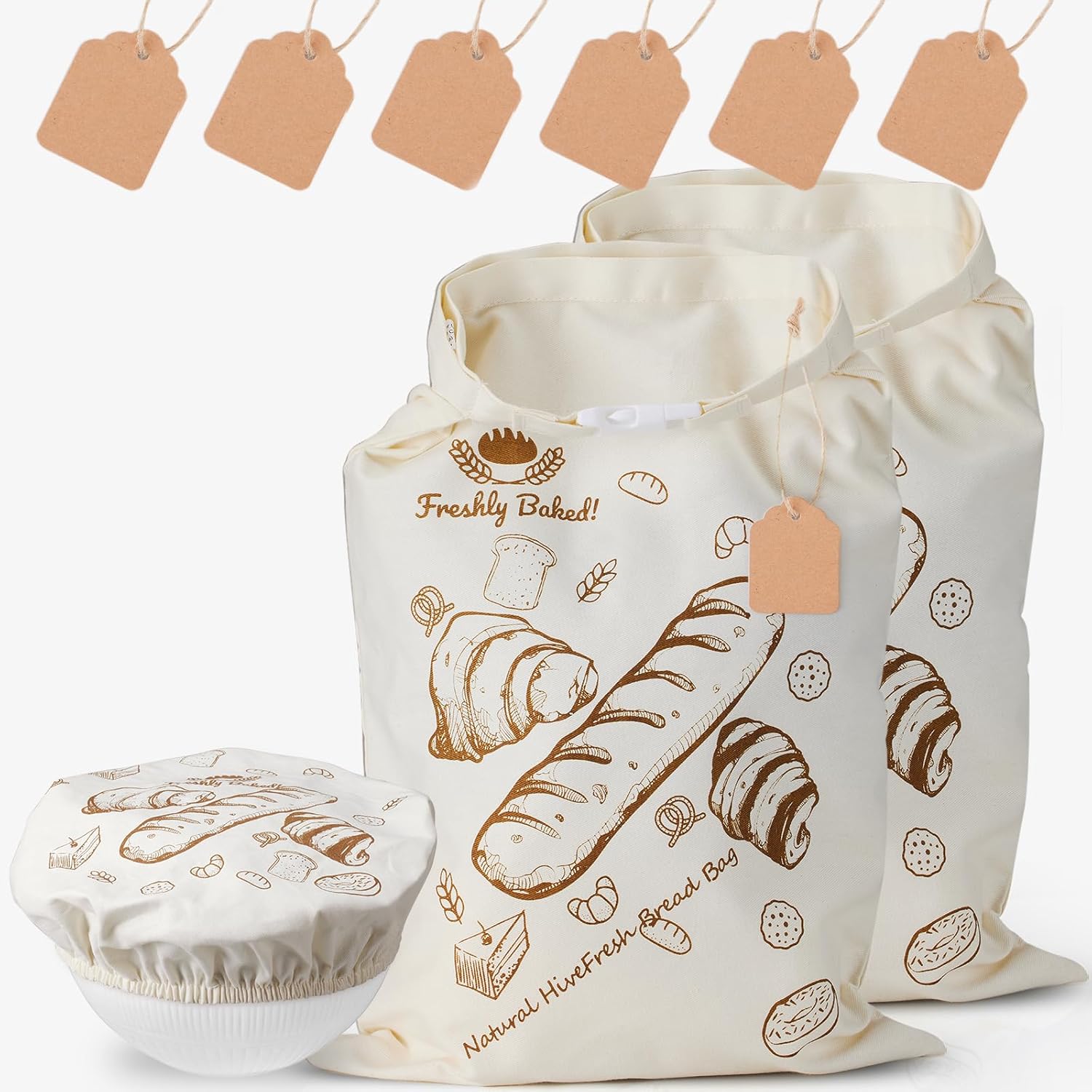• 🌿 Eco-Friendly & Reusable with Writable Labels – Crafted from breathable cotton-linen fabric with a removable beeswax liner, this 2-pack bread bag set includes 6 PCS DIY writable labels for easy organization. Fully plastic-free and compostable, it’s the perfect sustainable storage choice for eco-conscious homes.