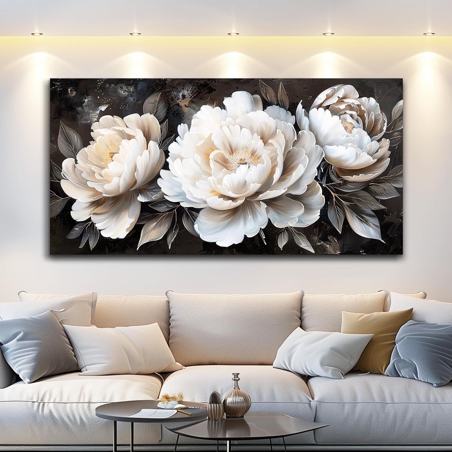 QIYILEXWART Canvas Wall Art For Living Room Wall Decor For Bedroom Office Wall Decoration White Peony Landscape Painting Farmhouse Pictures Artwork Room Aesthetic Home Decor 20x40 In