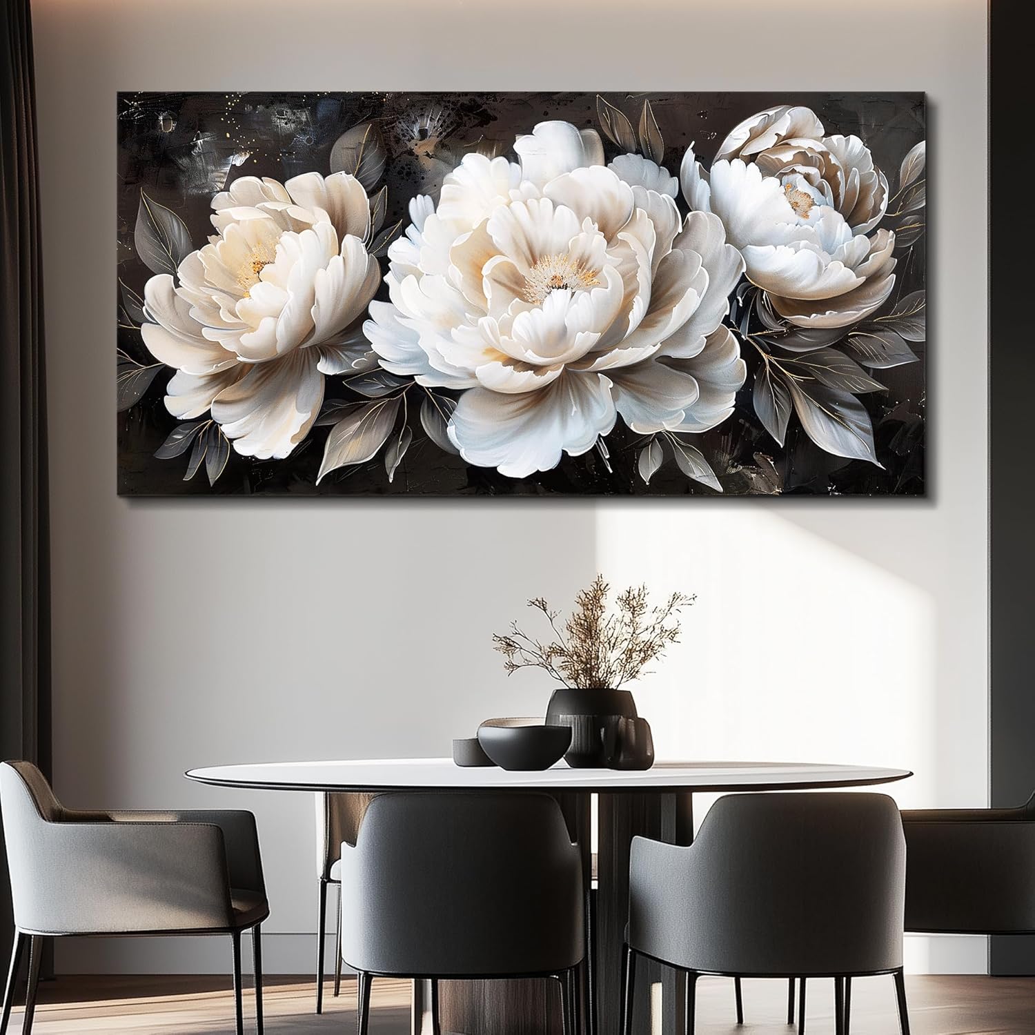 QIYILEXWART Canvas Wall Art For Living Room Large Wall Decor For Office Bedroom Decorations White Peony Landscape Pictures Farmhouse Painting Artwork Room Wall Mural Aesthetic Home Decor 30x60 In