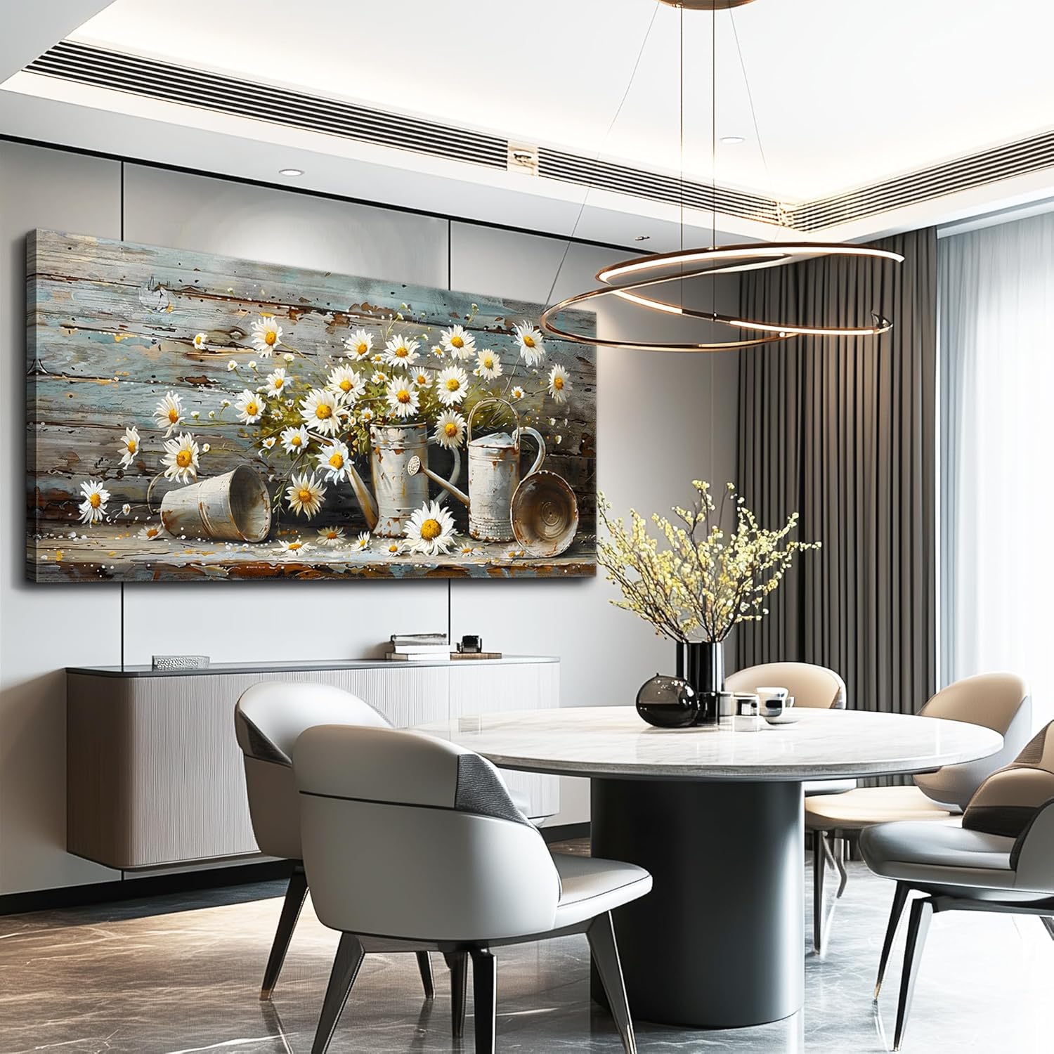 QIYILEXWART Large Wall Decor For Living Room Canvas Wall Art For Kitchen Modern Wall Decorations For Bedroom Daisy Rustic Landscape Painting Farmhouse Pictures Artwork Room Home Decor 24x48 In