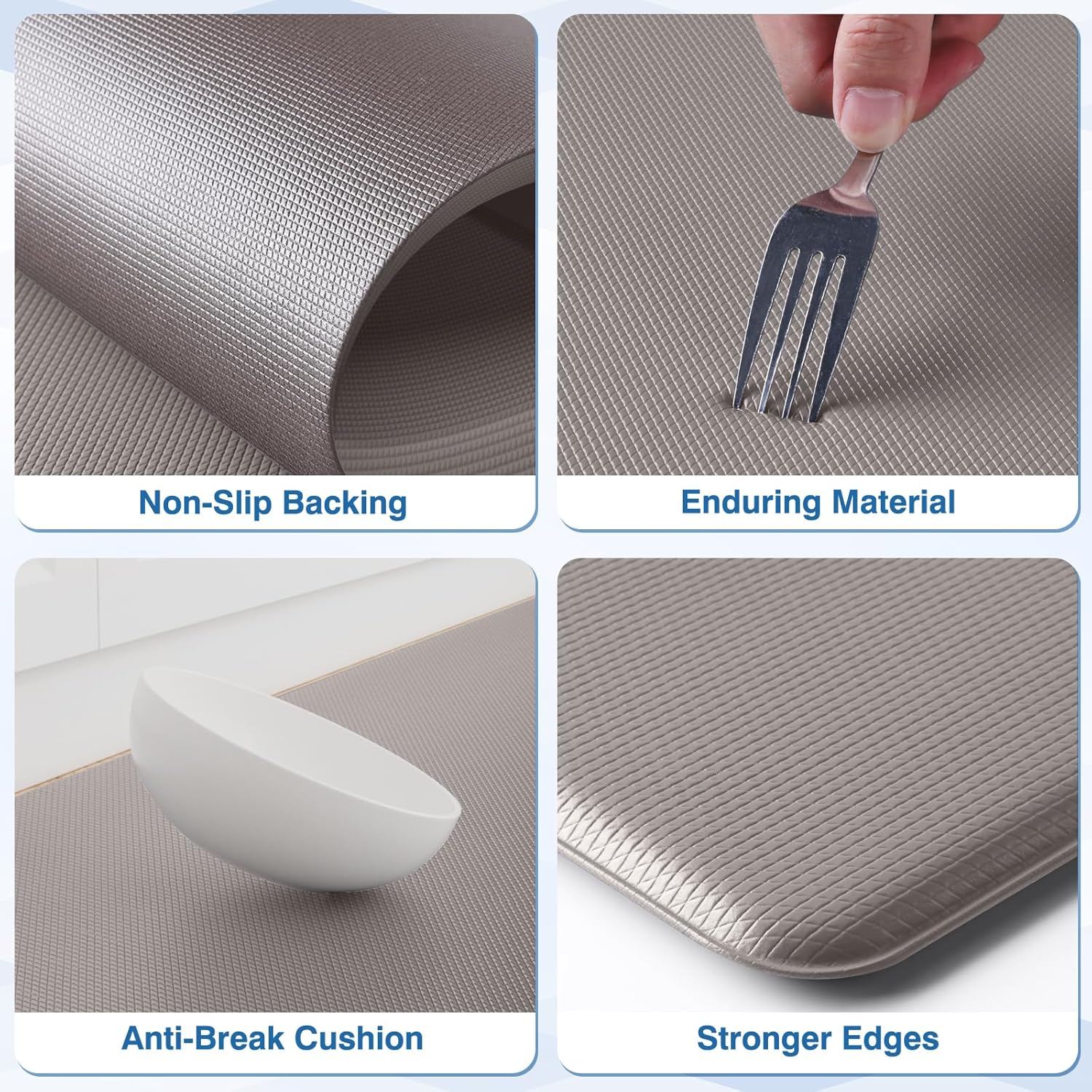 • Non-Slip Design: This standing mat features non-slip backing to keep it securely in place on various surfaces like tile, wood, ceramic, and marble. For optimal safety, always place the kitchen mat on dry, flat surfaces