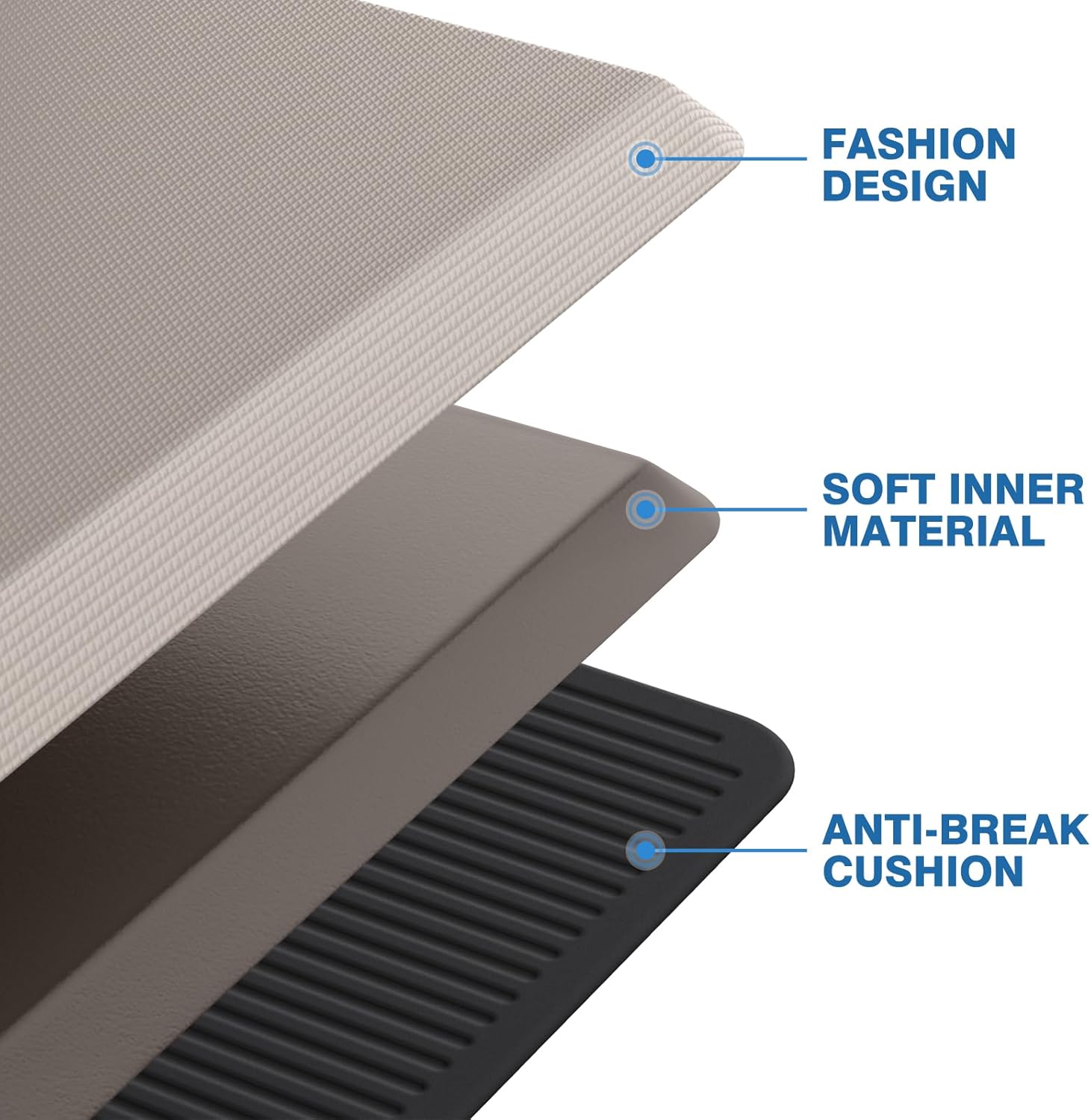 • Non-Slip Design: This standing mat features non-slip backing to keep it securely in place on various surfaces like tile, wood, ceramic, and marble. For optimal safety, always place the kitchen mat on dry, flat surfaces