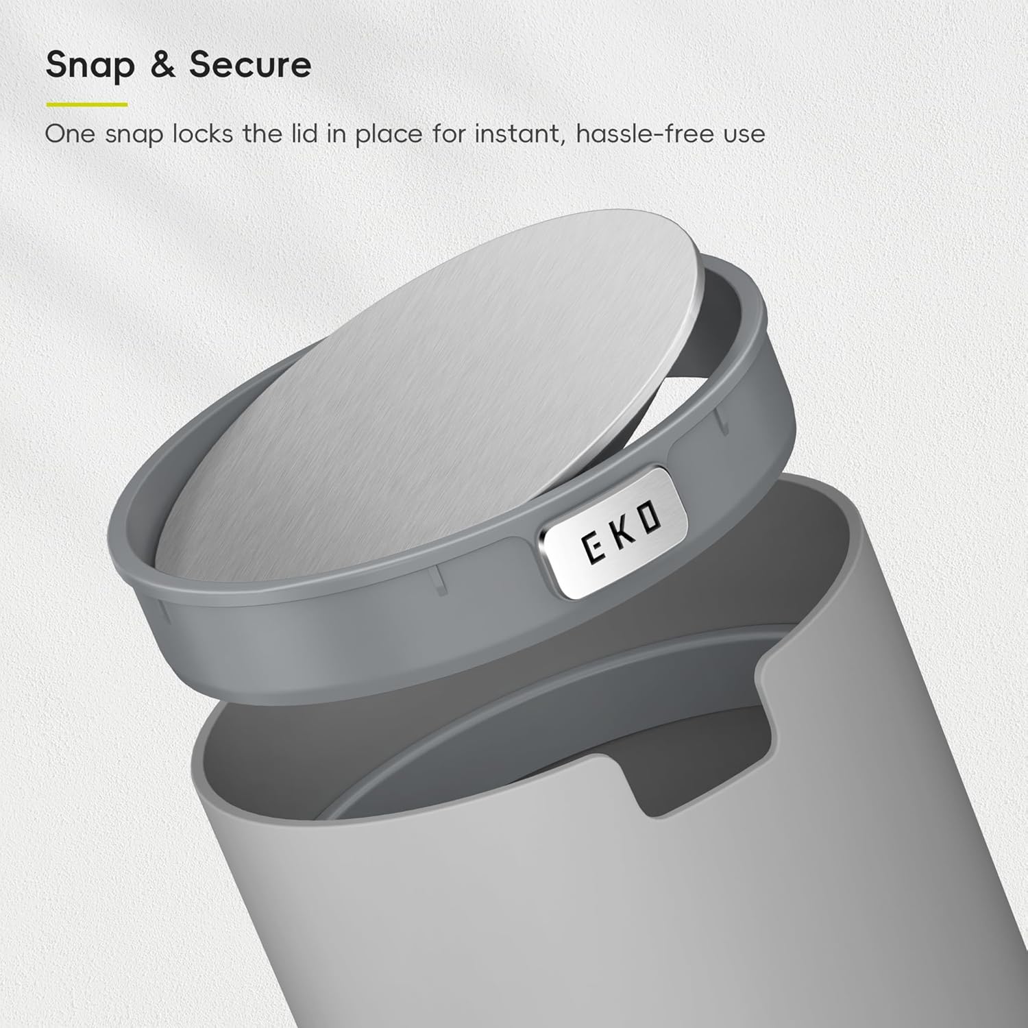 EKO Fandy 0.58 Gal/2.2L Mini Trash Can with Lid, Swing-Top Desktop Trash Can for Bathroom, Countertop, Vanity, Desk or Office, Small Garbage Bin (Grey)