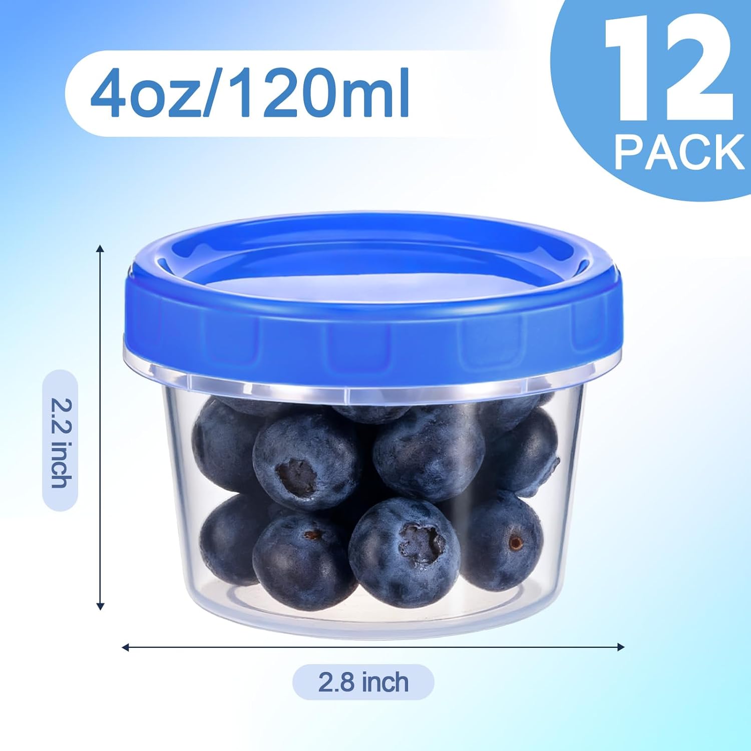 • Versatility: These small snack containers with lids have flat bottoms and twist tops for stackable use. 4 oz containers with lids are not only freezer safe, but also microwave safe! TIP: You need to open the lid when you put it in the microwave