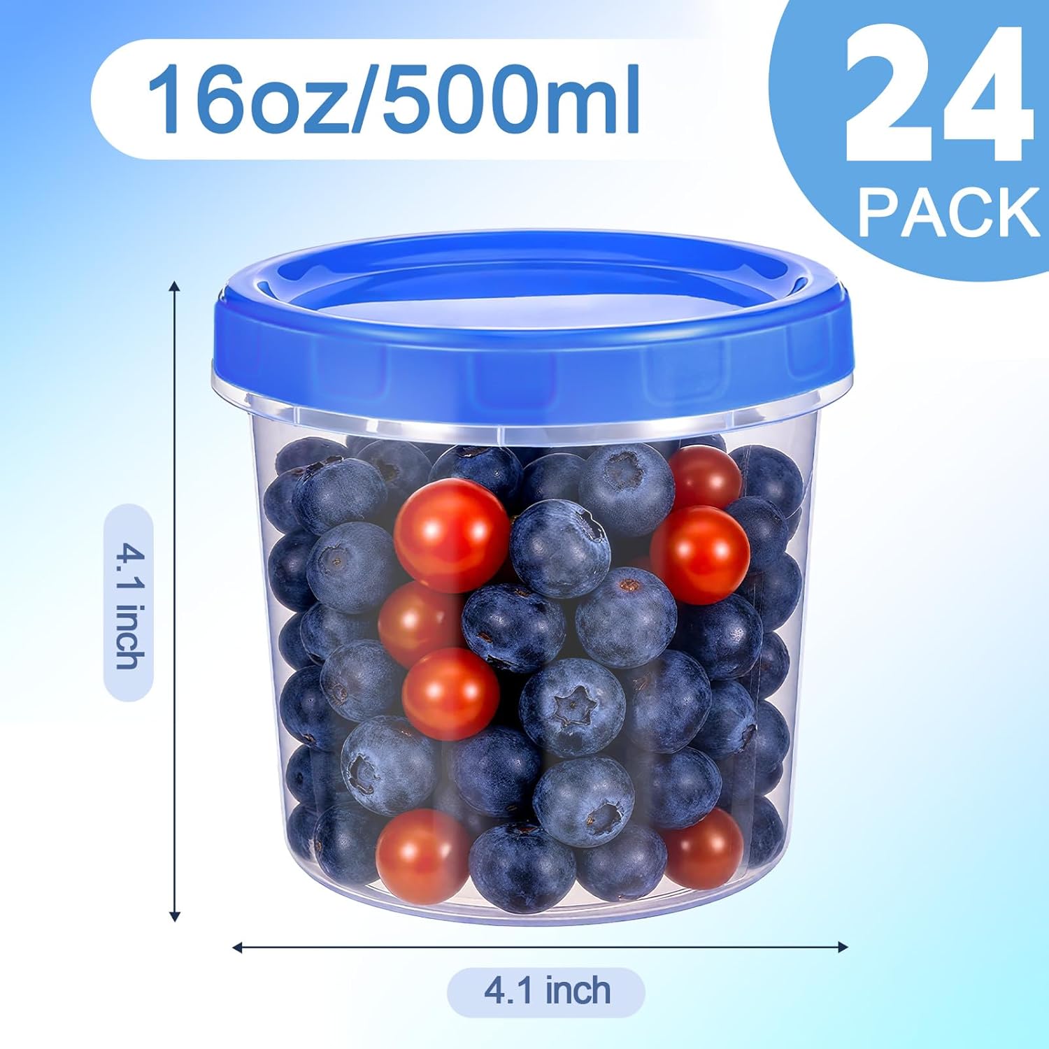24 Pcs 16 oz Plastic Deli Containers with Screw Lids, Freezer Storage Containers Reusable 2 Cup Food Storage Container with Pen & Brush for Snack Salad Fruit, Microwave & Dishwasher Safe