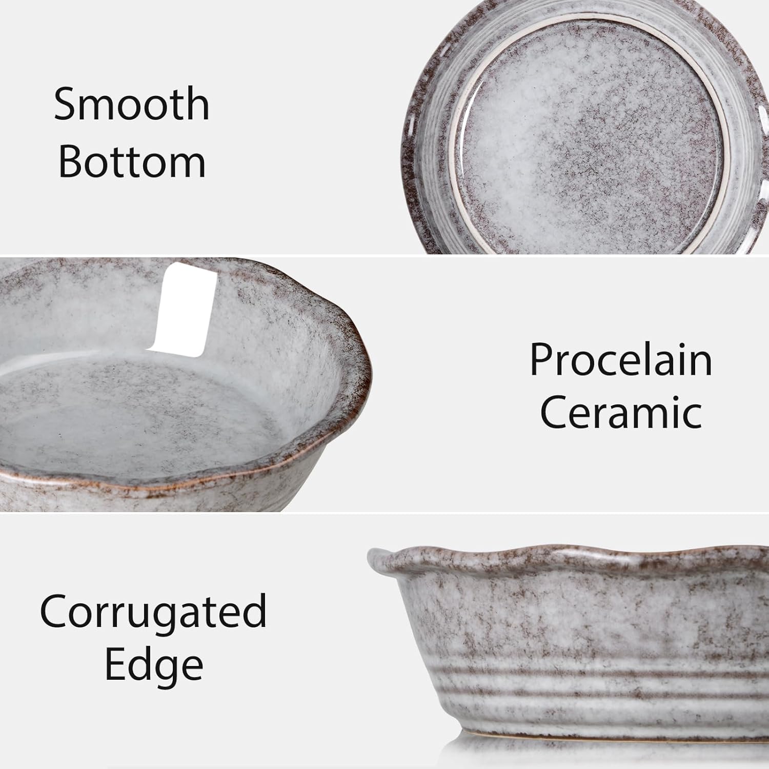NUTRIUPS Small Pie Pans Set of 4, 6.5 Inch Ceramic Mini Pot Pie Baking Dishes, Oven Safe (6.5in, Grey, 4PCS)