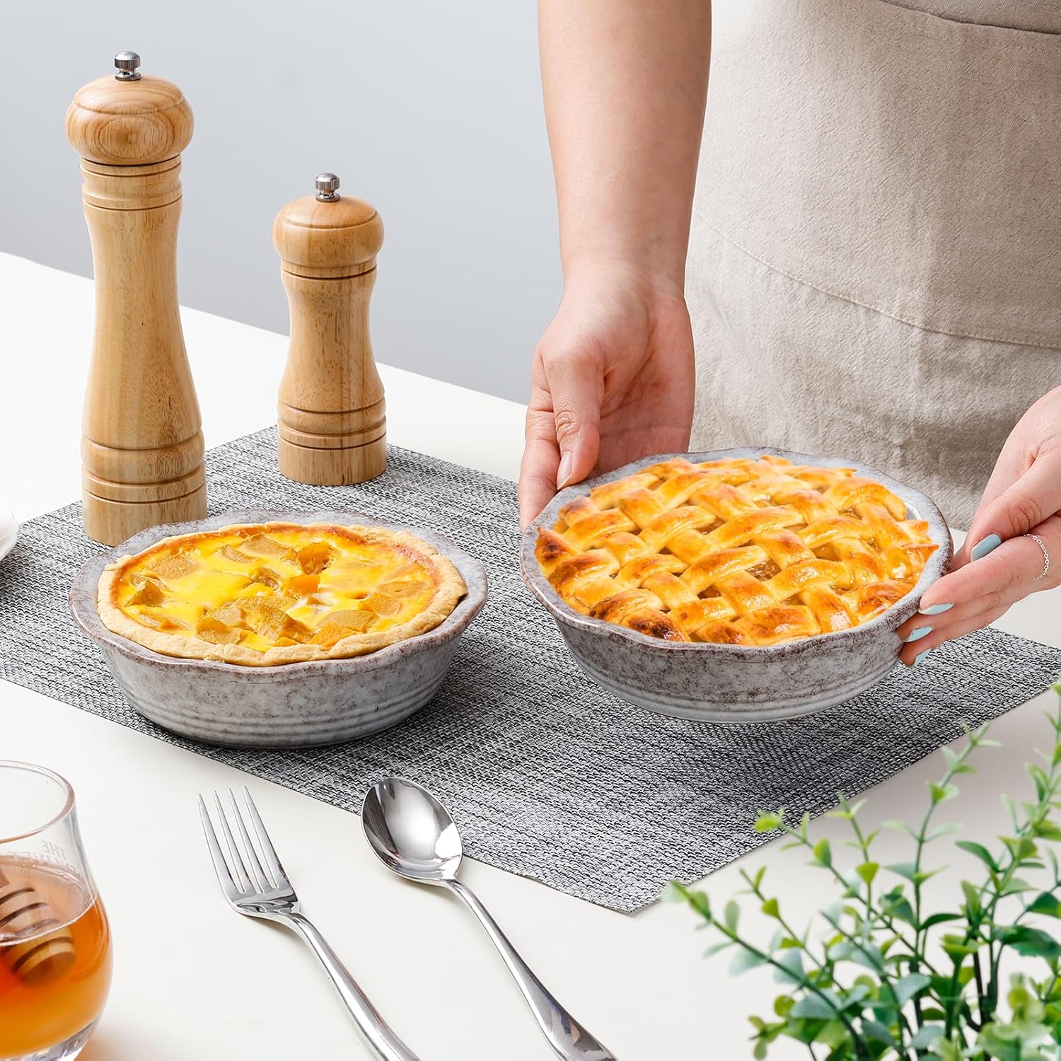 • 🥧Healthy Material🥮: Made of durable and non-porous stoneware, resistant to scratches and stains. Solid and enough, Food grade and lead-free material ensures the thick wall of healthy pie pan. Ceramic and porcelain does not stick as much as metal, longer using life span.
