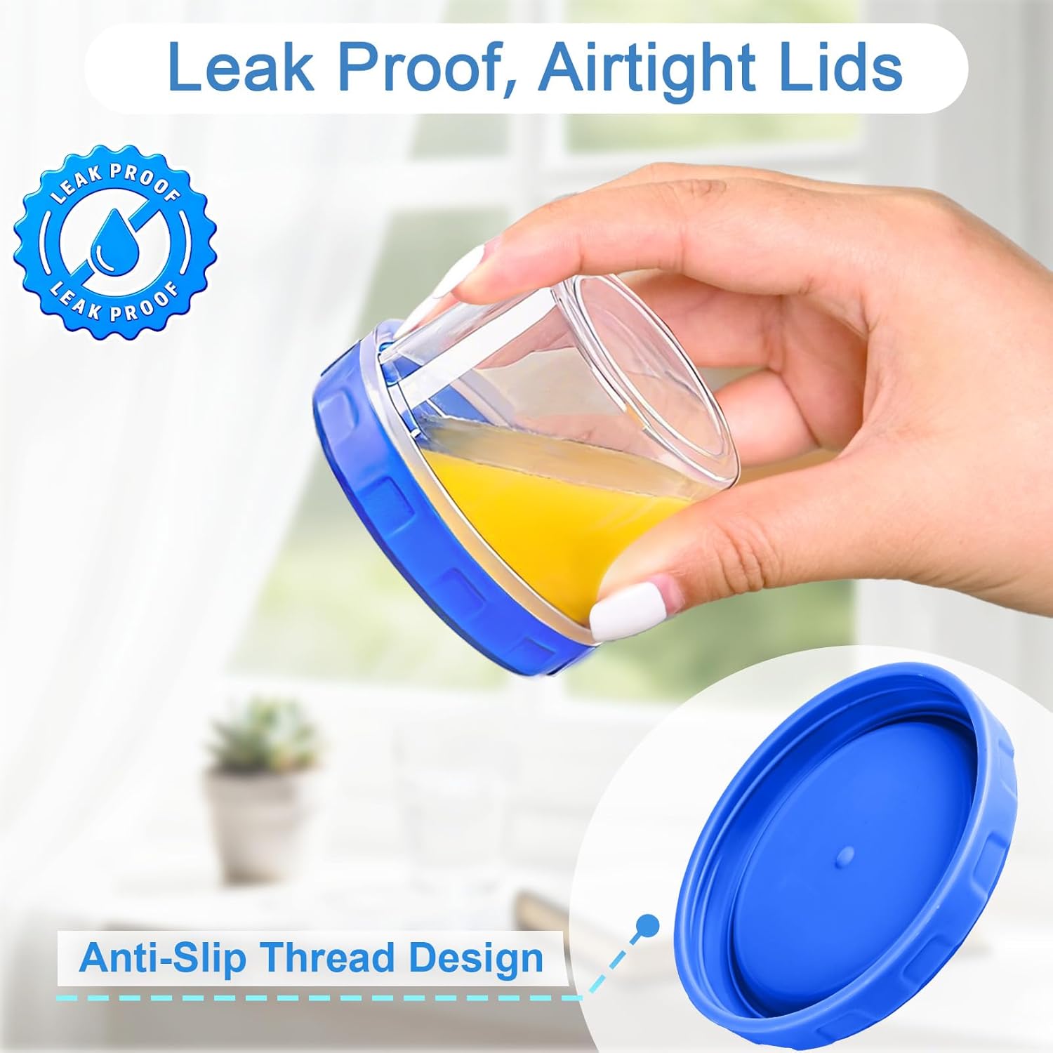 • Leakproof Design: Our dipping sauce cups with lids are designed with screw-on lids for a tight seal to keep food fresh. The sealed lid prevents spills and ensures safe storage of sauces and dressings. No more worrying about leaks in lunch bags, coolers or storage spaces, convenient for on-the-go use