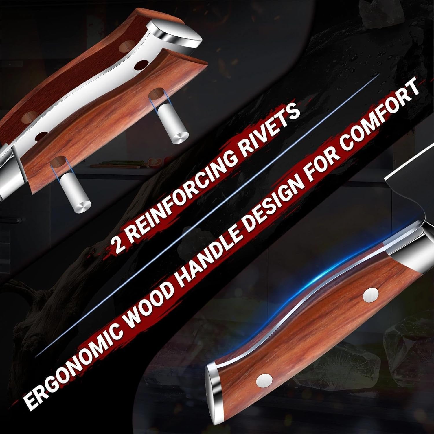 • STAIN-RESISTANT AND EASY TO CLEAN — TIVOLI cooking knife deep deliver superior resistance to rust, corrosion, and stains. This advanced material ensures an optimal balance of exceptional edge retention and structural durability. To preserve good knife for cooking precision and longevity, we recommend hand washing with a mild detergent immediately after use and gently drying with a soft cloth