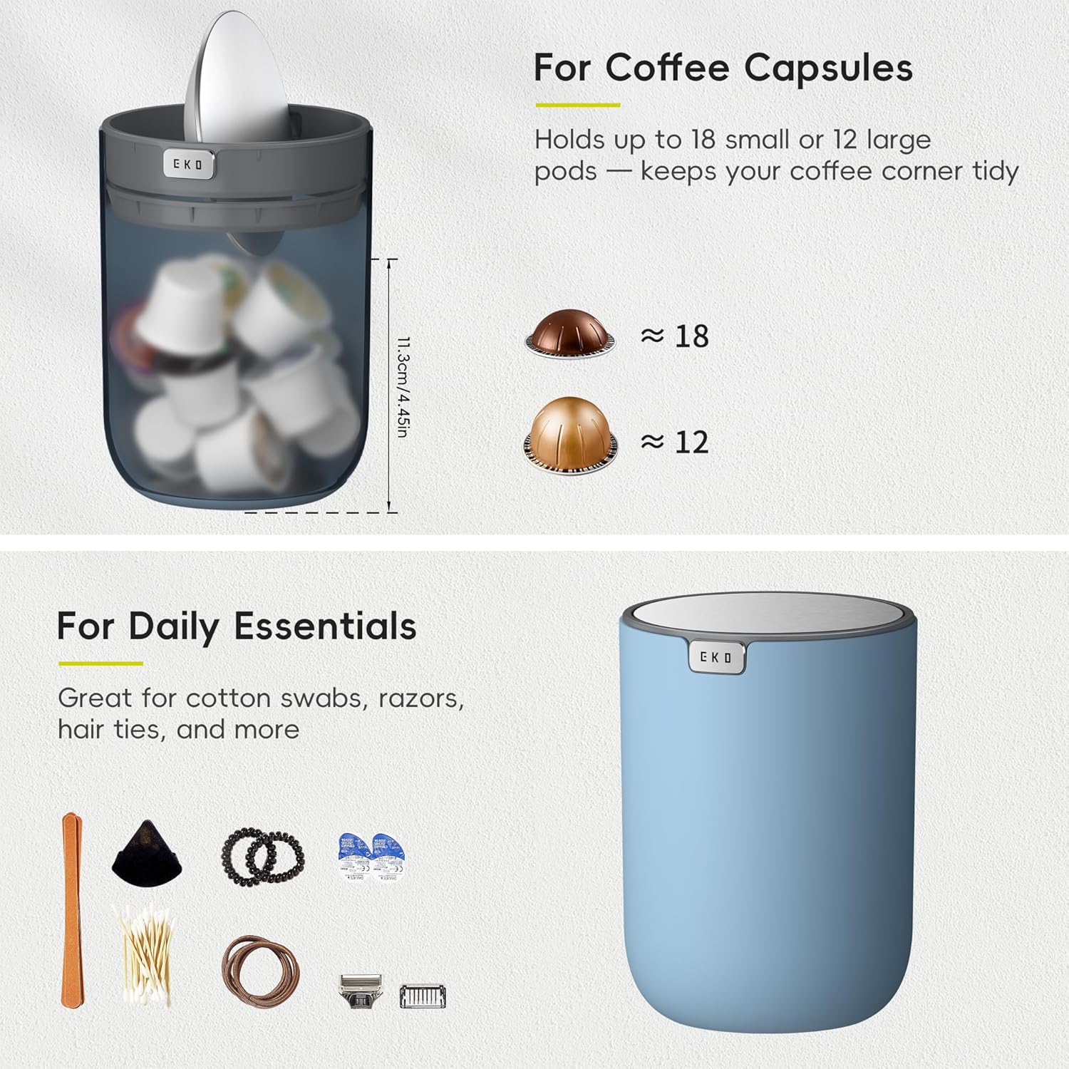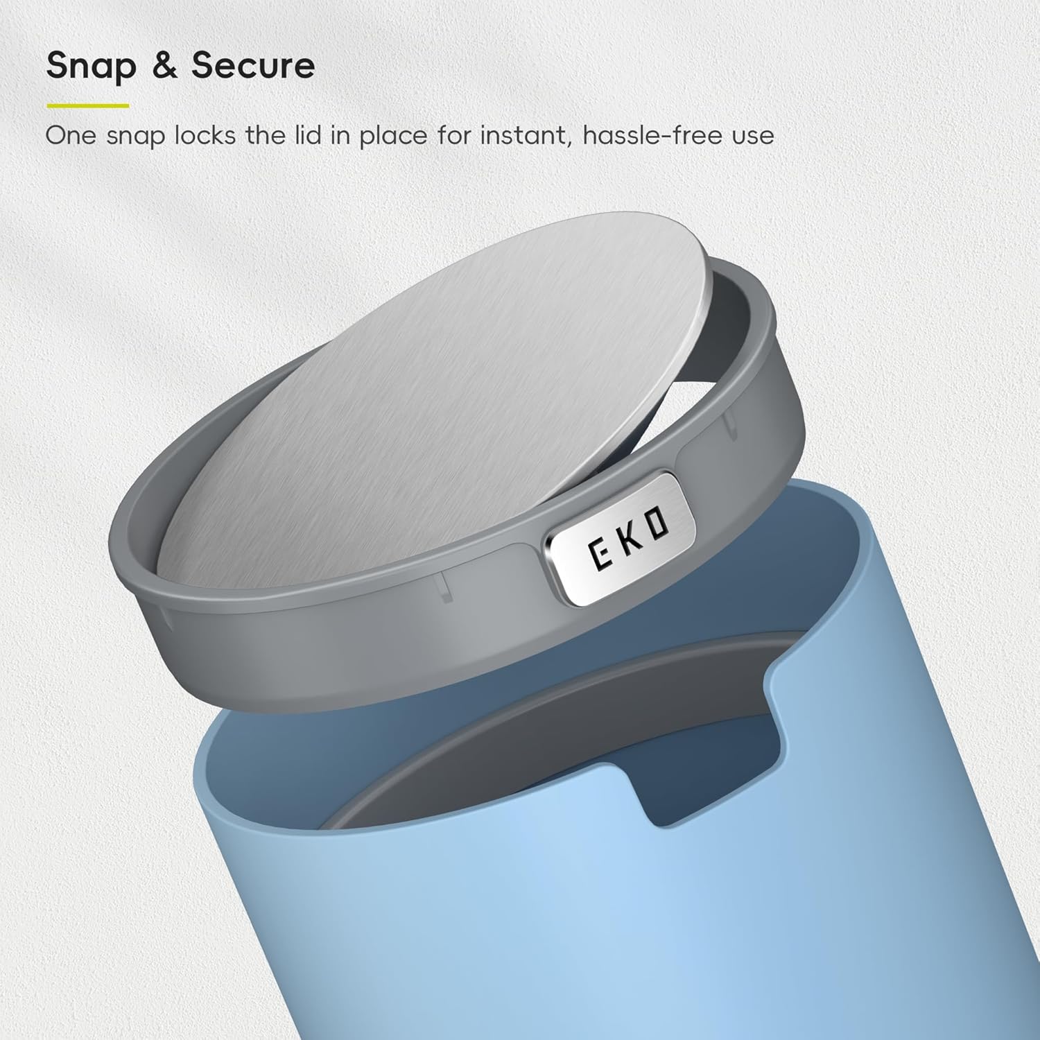 EKO Fandy 0.58 Gal/2.2L Mini Trash Can with Lid, Swing-Top Desktop Trash Can for Bathroom, Countertop, Vanity, Desk or Office, Small Garbage Bin (Blue)