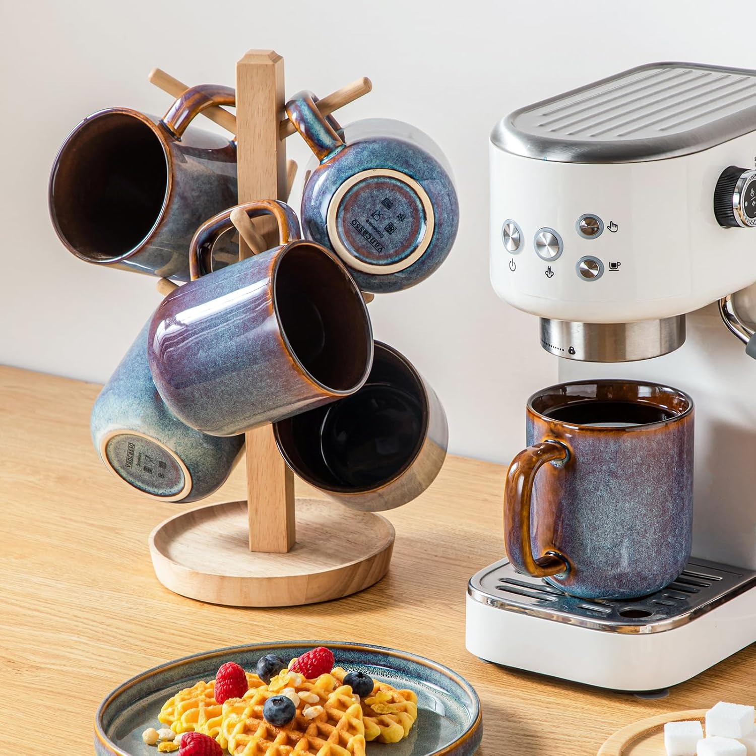 • 【Unique Reactive Glaze】Crafted with a unique reactive glaze, every coffee mug in this coffee mug set features its own one-of-a-kind finish, adding an artistic touch to your drinkware collection. This set is perfect for those who appreciate both style and function in their everyday mugs.