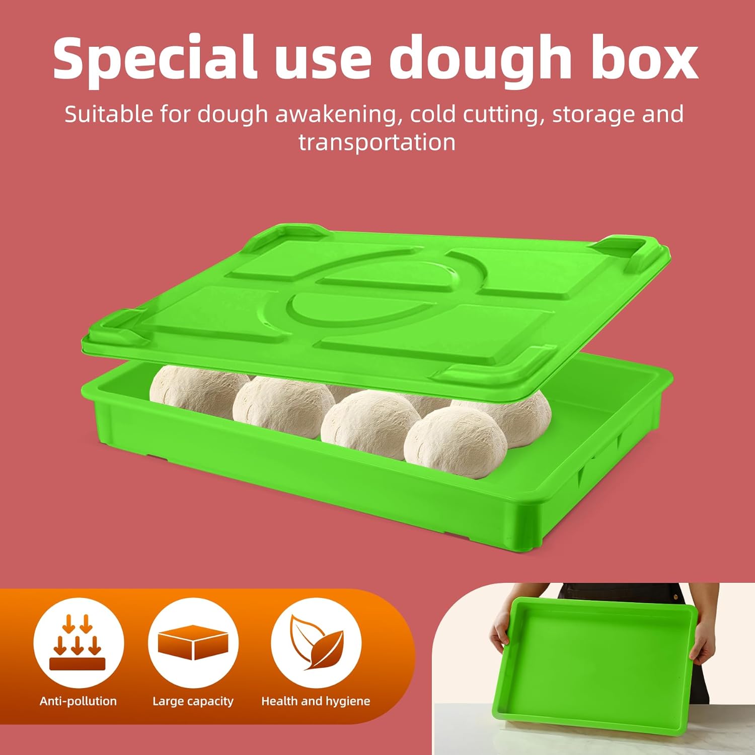 4-Pack Commercial Dough Proofing Box | Pizza/Bread Sourdough Food Storage Containers for Bakeries, Storage Bins with Lids (4 Pack Green, 22.8" L x 15.5" W x 6.1" H)