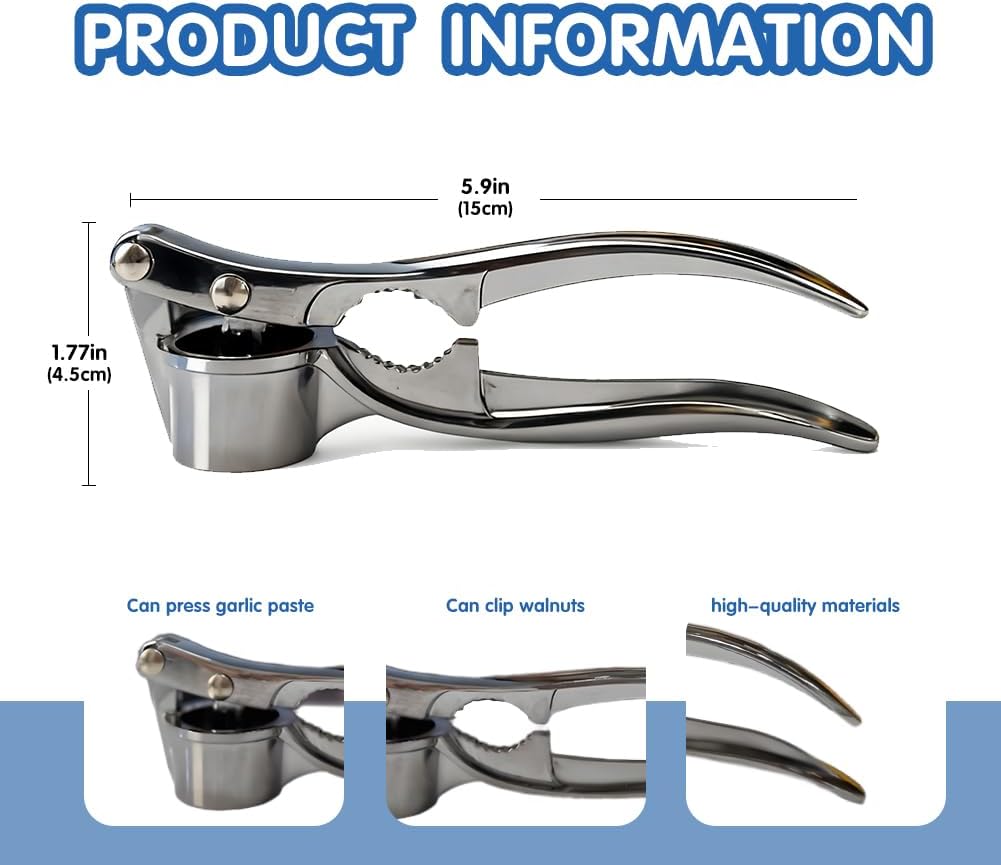 • Durable Metal Construction: Solid zinc-alloy body resists rust and deformation for reliable daily garlic pressing.