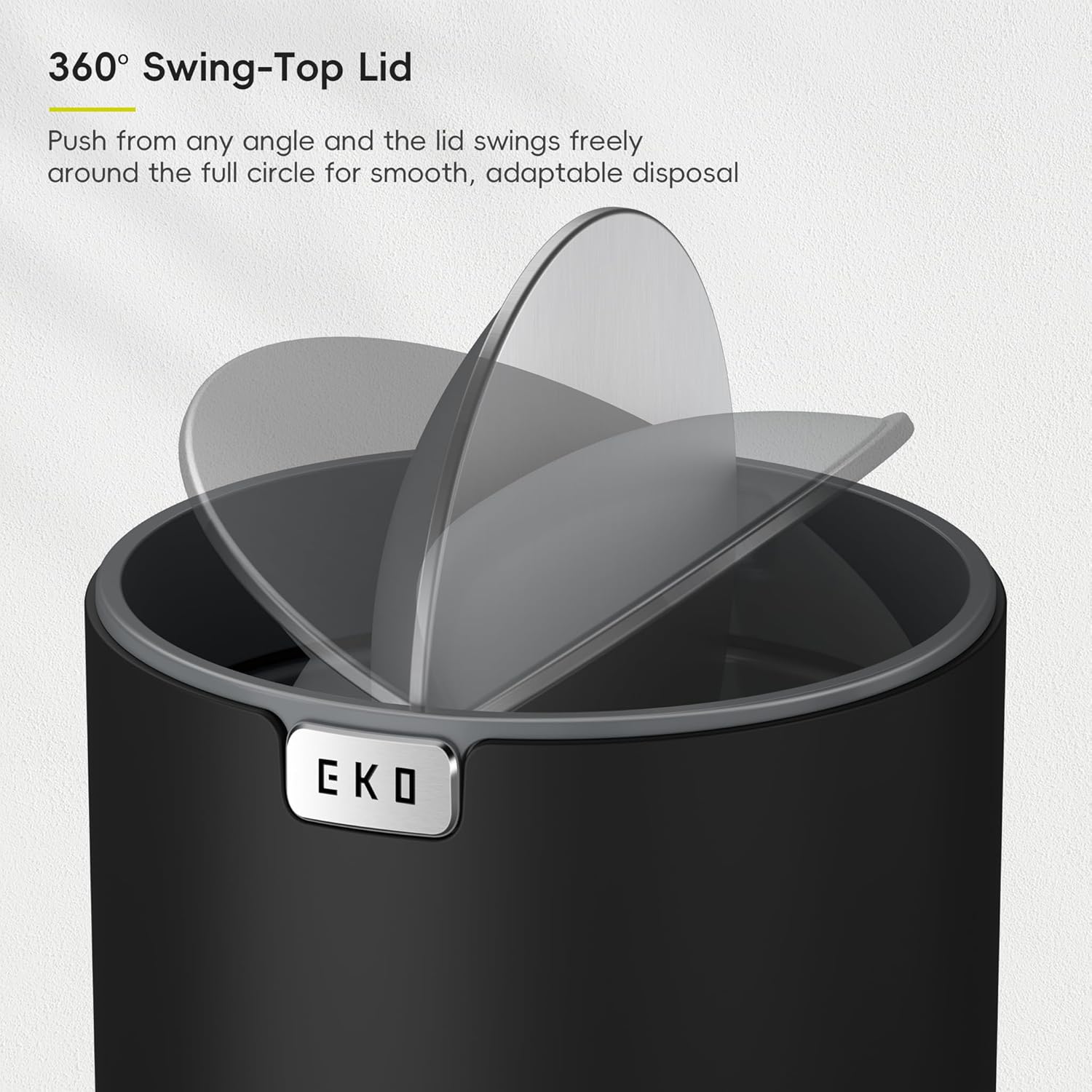 EKO Fandy 0.58 Gal/2.2L Mini Trash Can with Lid, Swing-Top Desktop Trash Can for Bathroom, Countertop, Vanity, Desk or Office, Small Garbage Bin (Black)