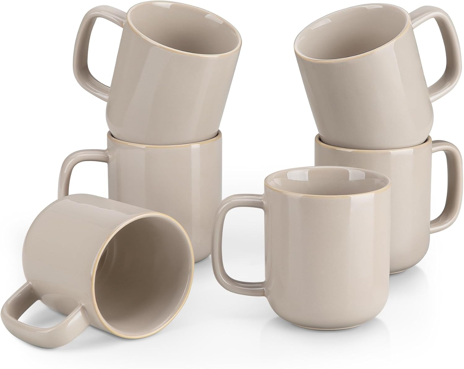 vancasso Coffee Mugs Set of 6, 12 Oz Ceramic Coffee Cups with Handle, Ceramic Unique Glaze Coffee Cup for Cappuccino, Latte, Tea, Cocoa, Dishwasher & Microwave Safe Gift Sets, Gray, Series PLAYA