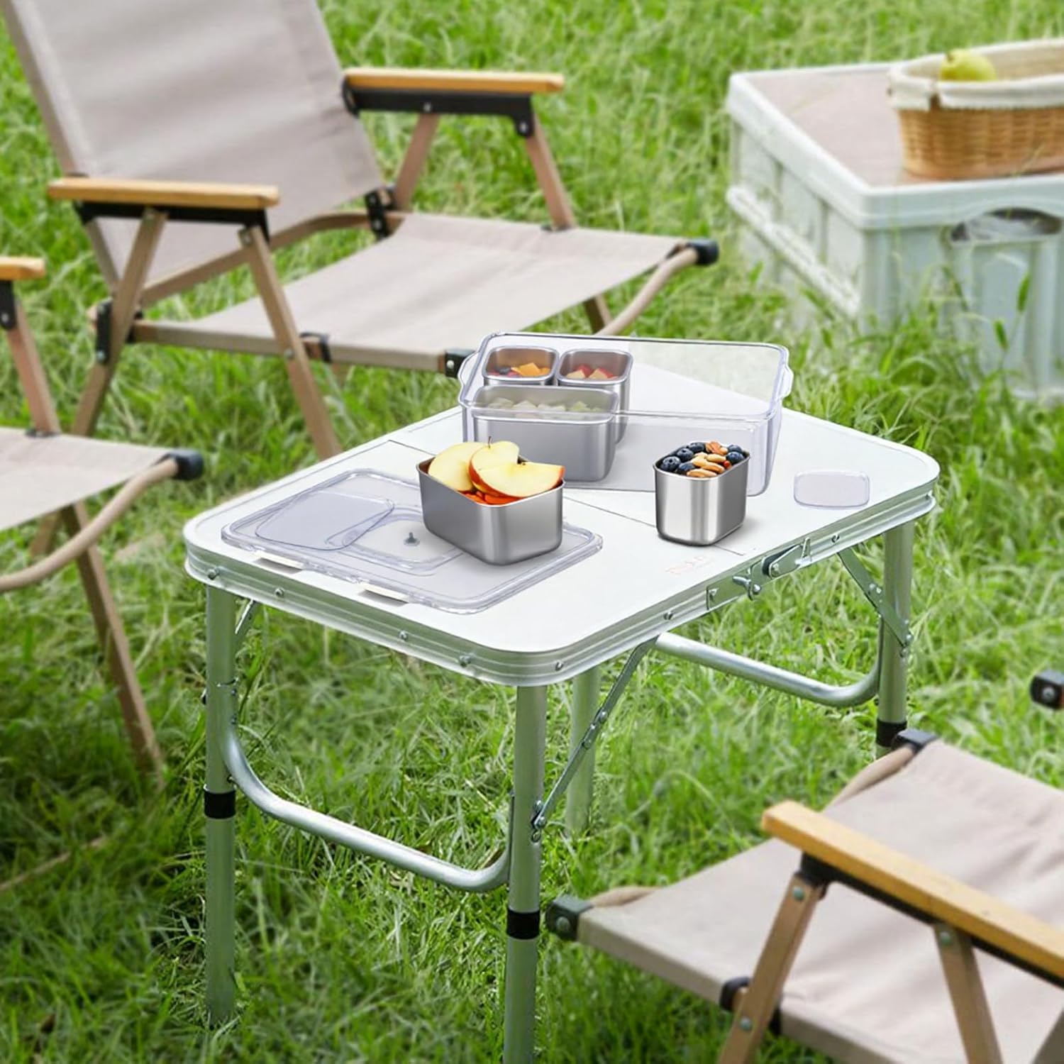 • 【8 Leak-Resistant Compartments】Includes eight removable stainless steel inner containers (each measuring 3.9" x 2.9" x 2.8") to keep snacks, fruits, nuts, and cheese neatly separated—no mixing, no mess. The clear snap-lock outer lid with a full silicone seal locks in freshness and prevents spills on the go.