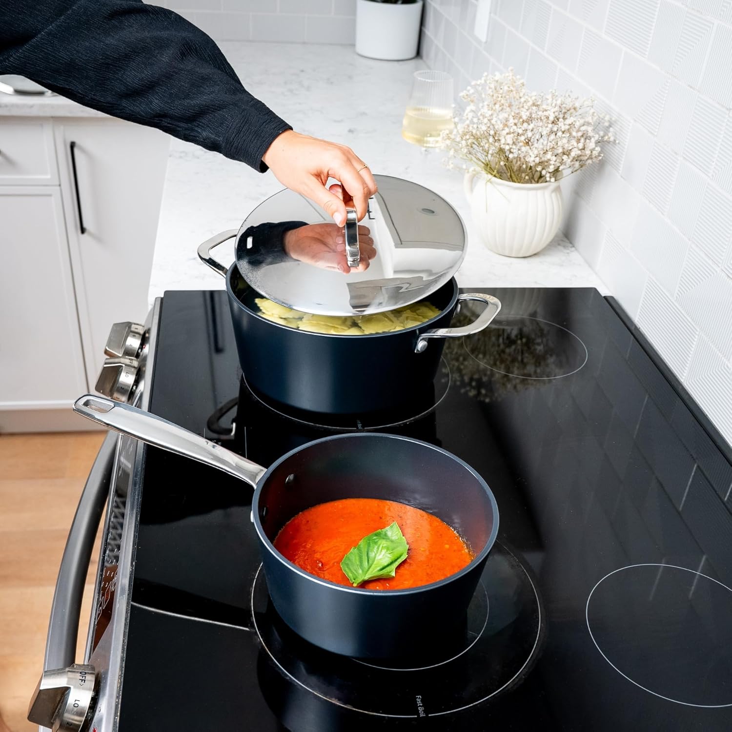 • Alva's Legacy: We bring healthy foods by delivering non-toxic pots and pans to countless families. Our cookware are made without PFAS, PFOA, PTFE, lead and cadium. Designed and manufactured with the utmost care and your health in mind, Alva cookware also looks as good as it performs. So when you’re cooking at home, you can focus on the simple pleasures of creating delicious dishes to enjoy with your family and friends.