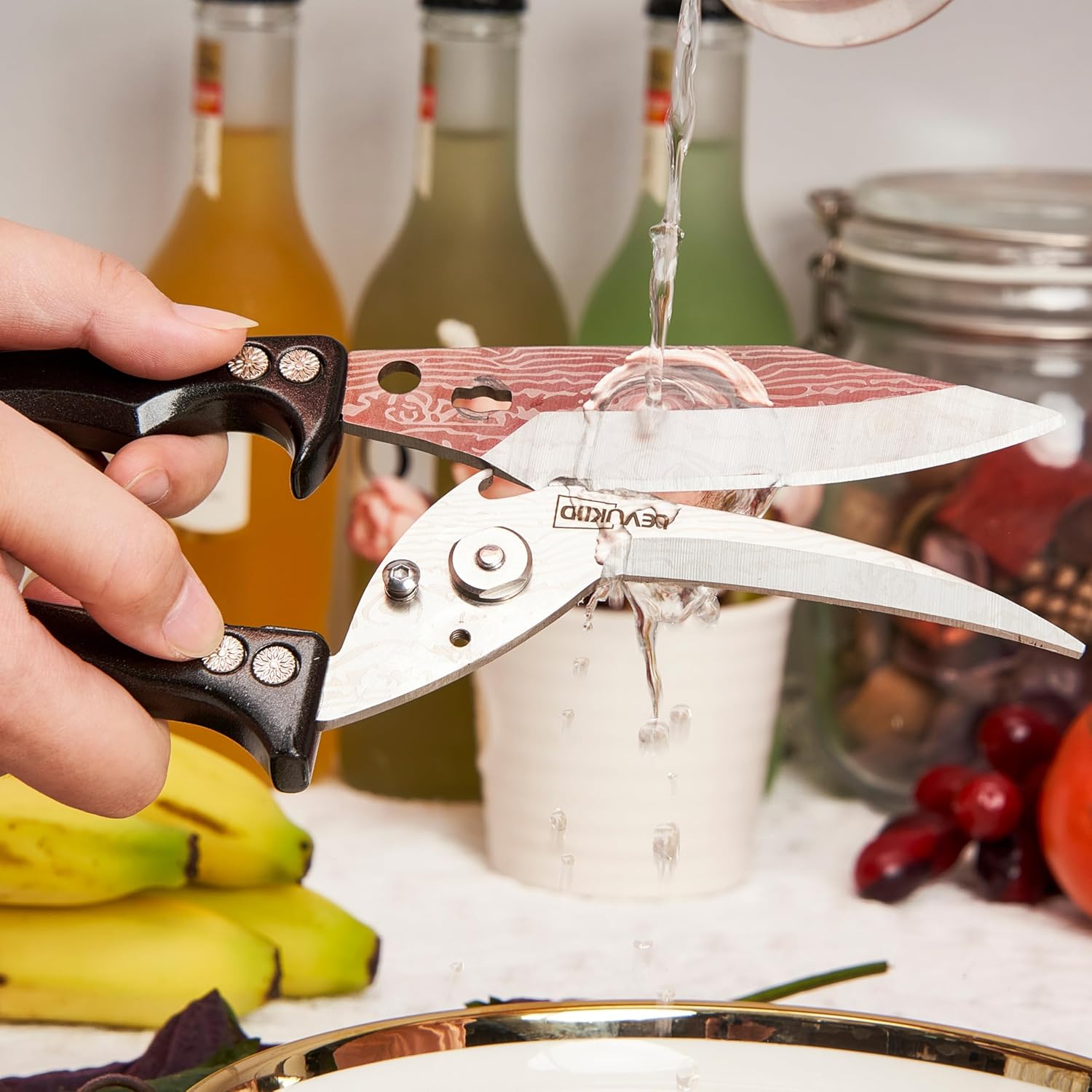 • 1. 10-Inch Extra-Thick Stainless Steel for Heavy-Duty Cutting Scissors 【30% Thicker for Enhanced Durability】 10-inch extra-thick stainless steel relaxedcut through poultry, turkey, raw meat, and seafood. With a 31% thicker construction than traditional shears, these deliver superior strength for tough cutting tasks. Ergonomic aluminum handles provide a non-slip grip and maximum control, reducing hand strain during extended use.