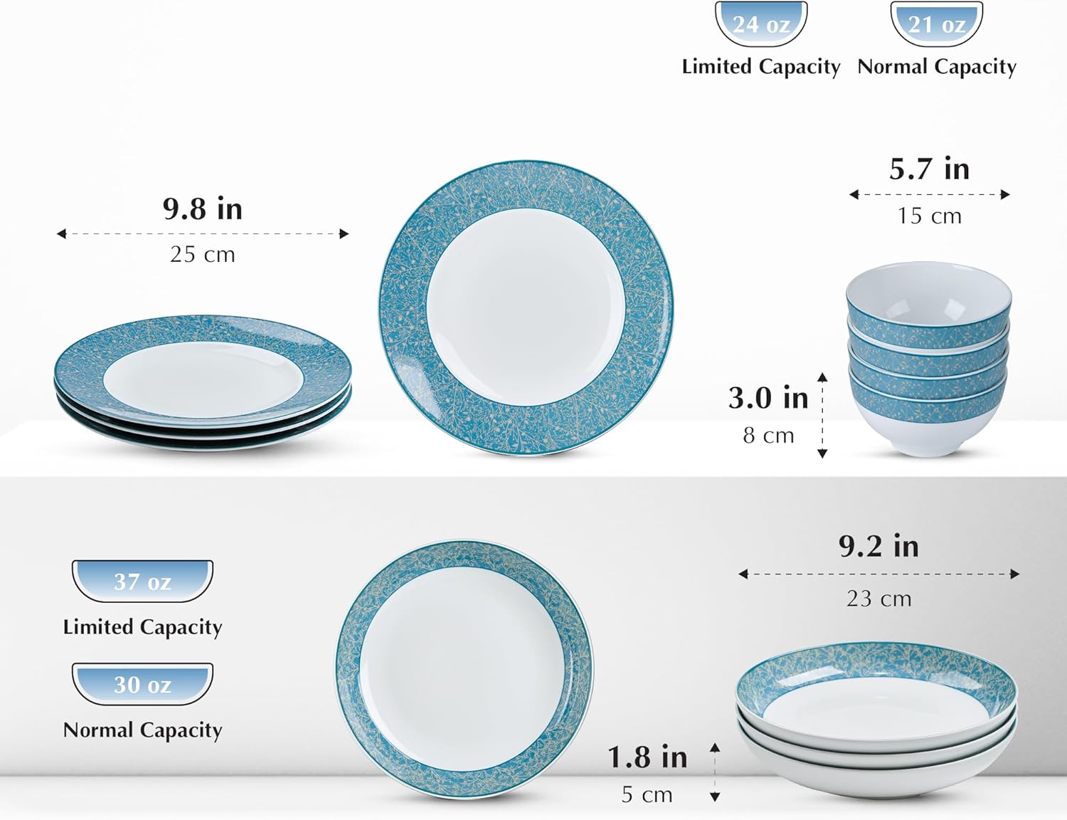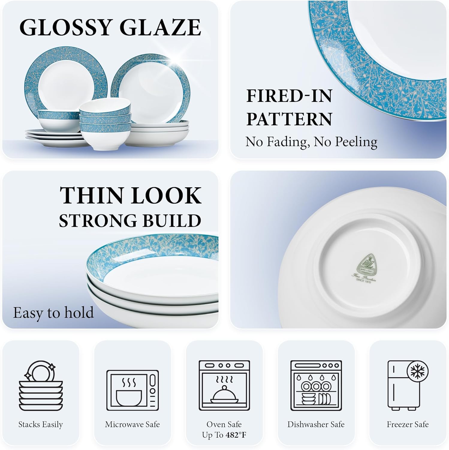 • VERSATILE & NATURE-INSPIRED — While typical Ceramic Dish Sets may look dull or fade over time, this premium porcelain Blue and White Dinnerware stays timeless with a bright and glossy finish. The Blue Leaves design captures the rustic charm of nature with stylized floral and leaf motifs—bringing warmth and elegance to every meal. Built for everyday use, beautiful enough to display, and perfect as a heartfelt gift