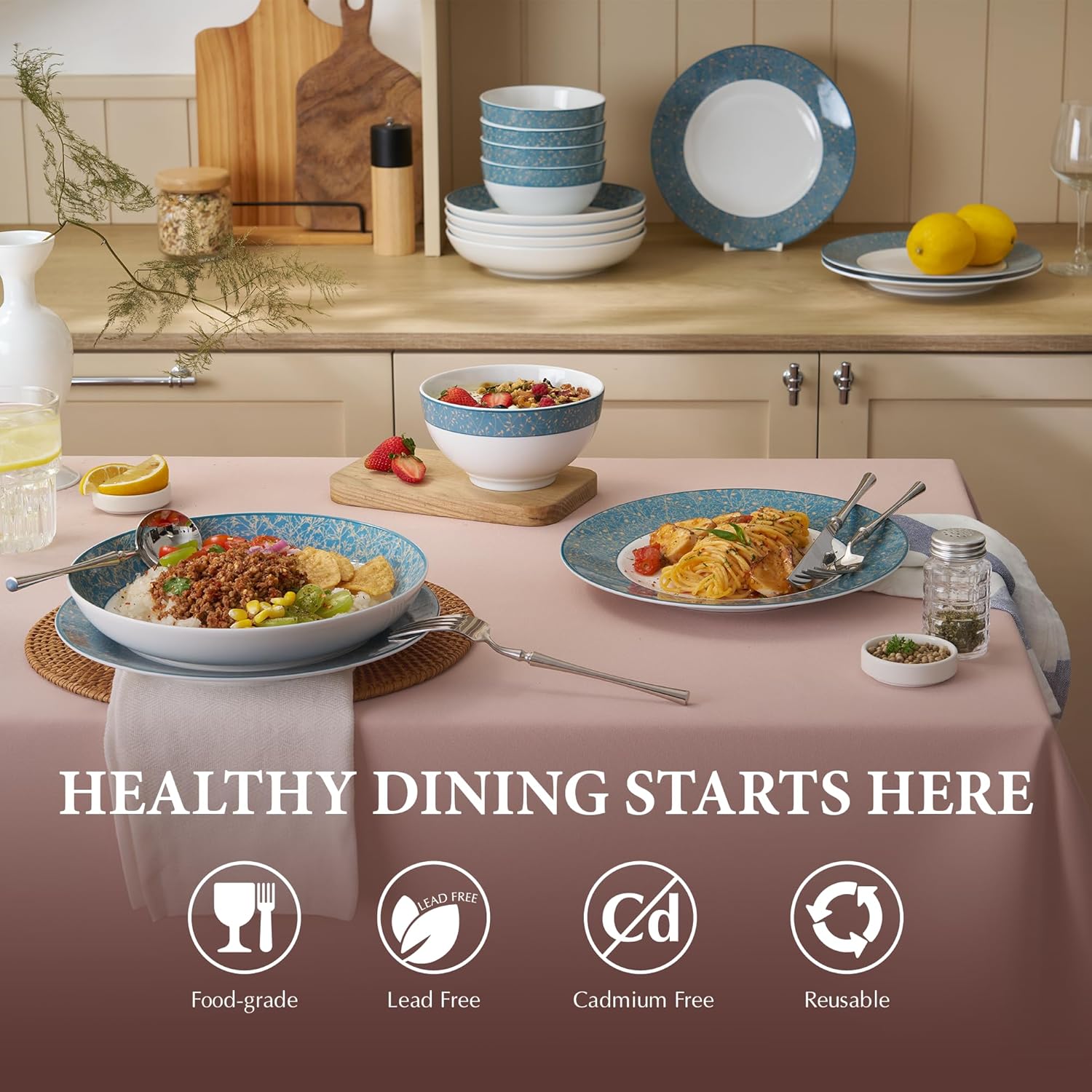 • NON-TOXIC — SAFE FOR HEALTH: While many Ceramic Plates and Bowls Sets may contain harmful chemicals, this 12-piece porcelain dinnerware set is made from rare, refined porcelain and fired at 2516°F—removing impurities and ensuring it's 100% non-toxic. No Lead, Cadmium, PTFE, PFOA, or PFAs—just safe, wholesome meals for your family
