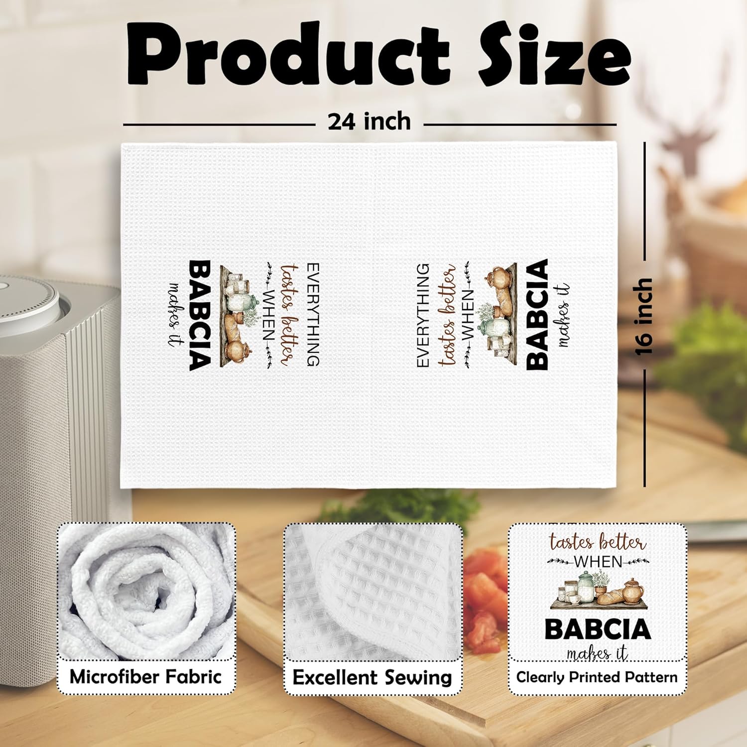 Babcia Gifts Kitchen Dish Towels, Grandma Grandmother Gifts for Women from Grandsons Grandchildren, Watercolor Cooking Utensils Hand Towels Kitchen Tea Towels Decorations, 16x24inch
