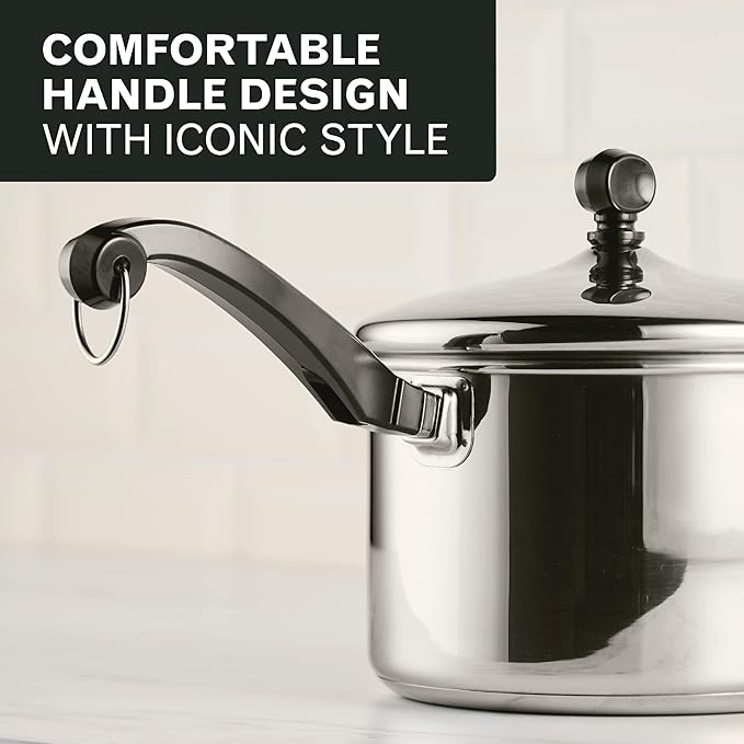 • ICONIC STYLE: Comfortable handles with iconic styling provide a confident grasp and stainless steel lids boast bell shapes, rolled rims and stylish knobs