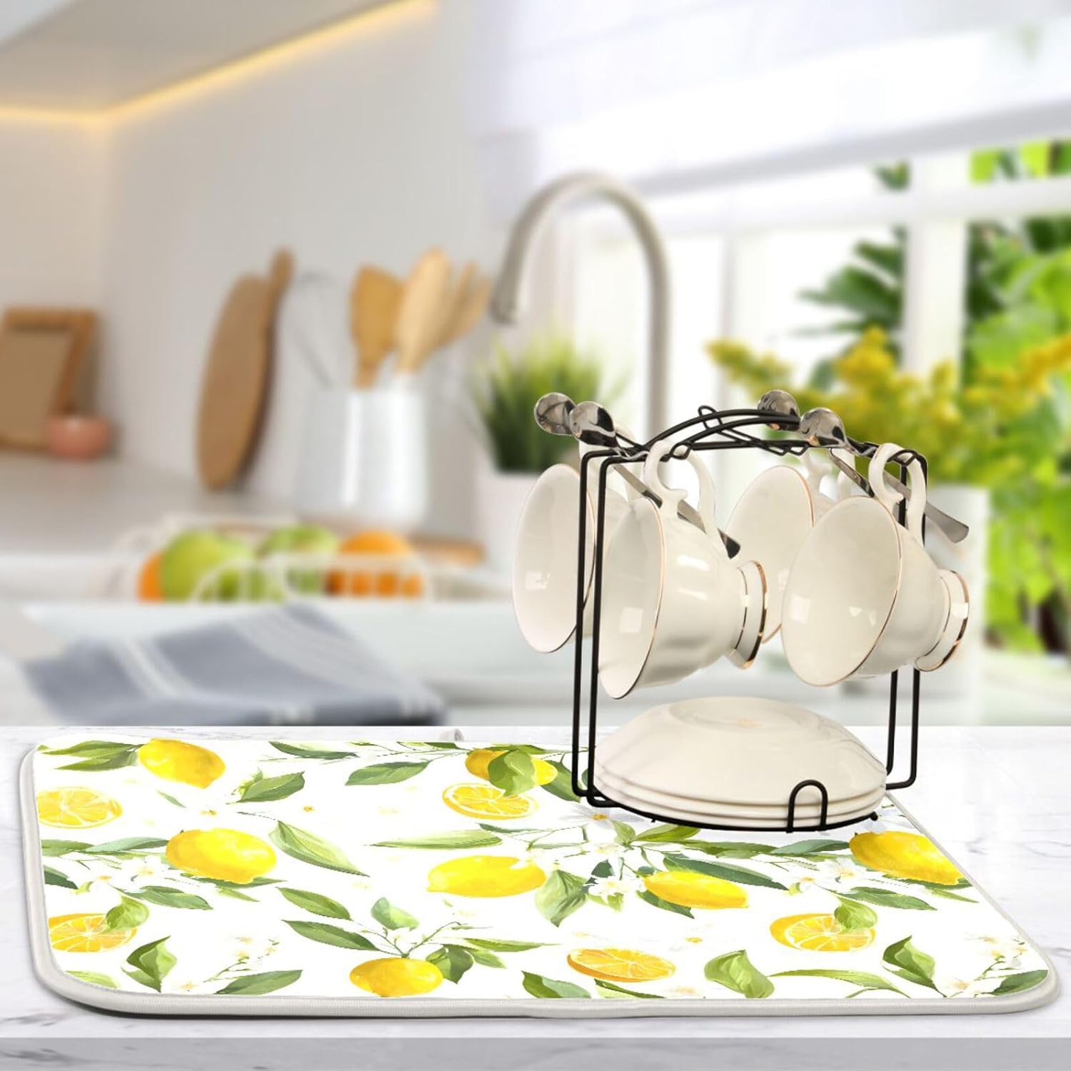 Lemon Leaf Dish Drying Mat for Kitchen Counter Absorbent Dish Drainer Mats Drying Pads 16"x18"