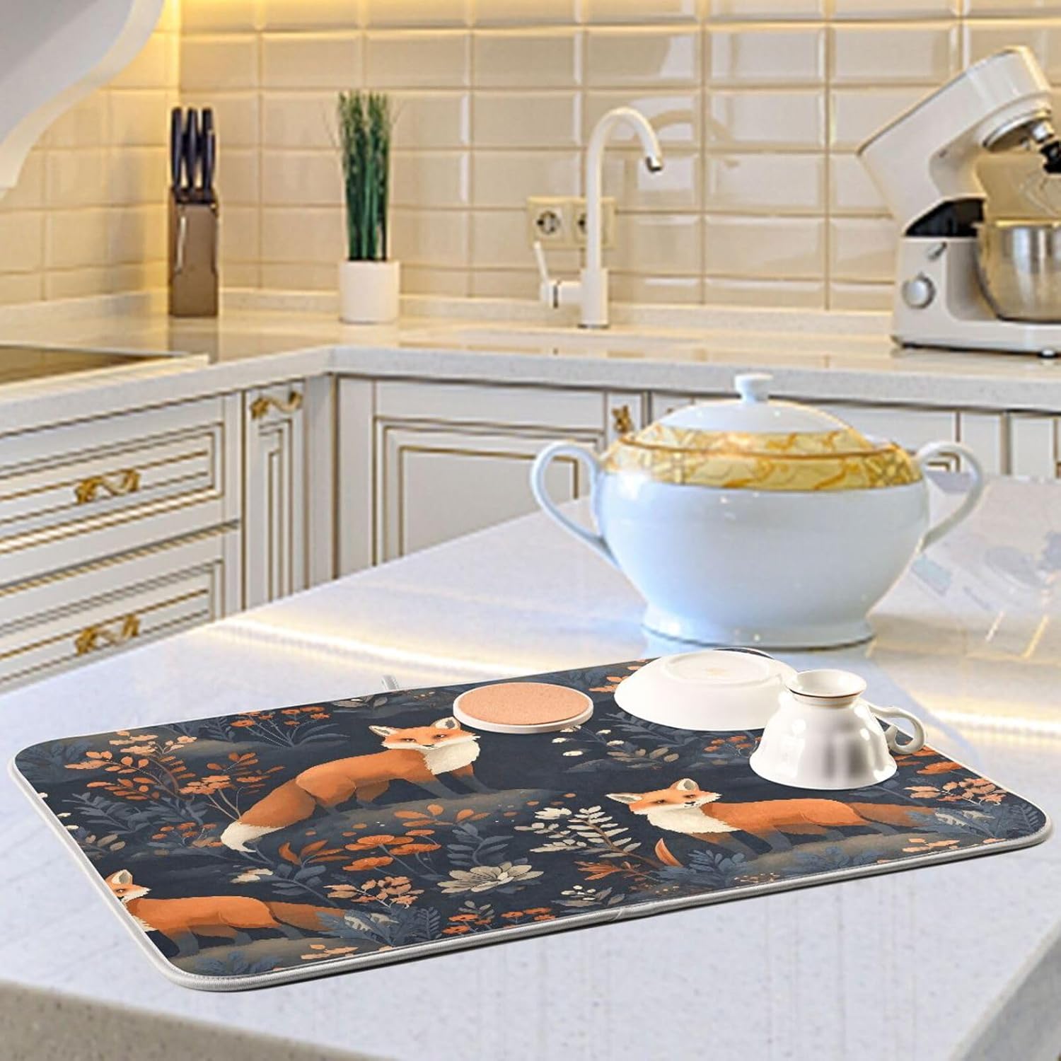 Fox Dish Drying Mat for Kitchen Counter Absorbent Dish Drainer Mats Drying Pads 18"x24"