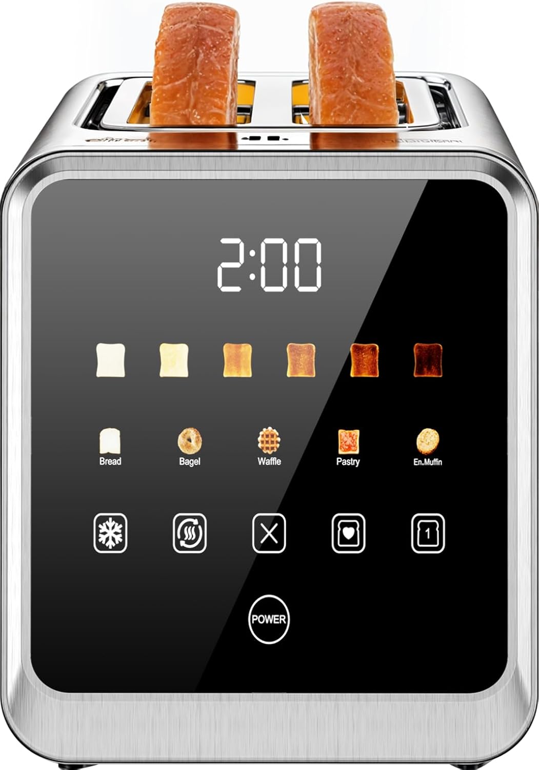 • [One-Slice Toasting Mode for Quick Results] When you only need one slice of toast, the one-slice toasting mode ensures both slots heat simultaneously, delivering even toasting for a perfectly crisp slice. This touchscreen toaster is designed to save energy while providing the same delicious results, making it perfect for quick mornings or single servings!