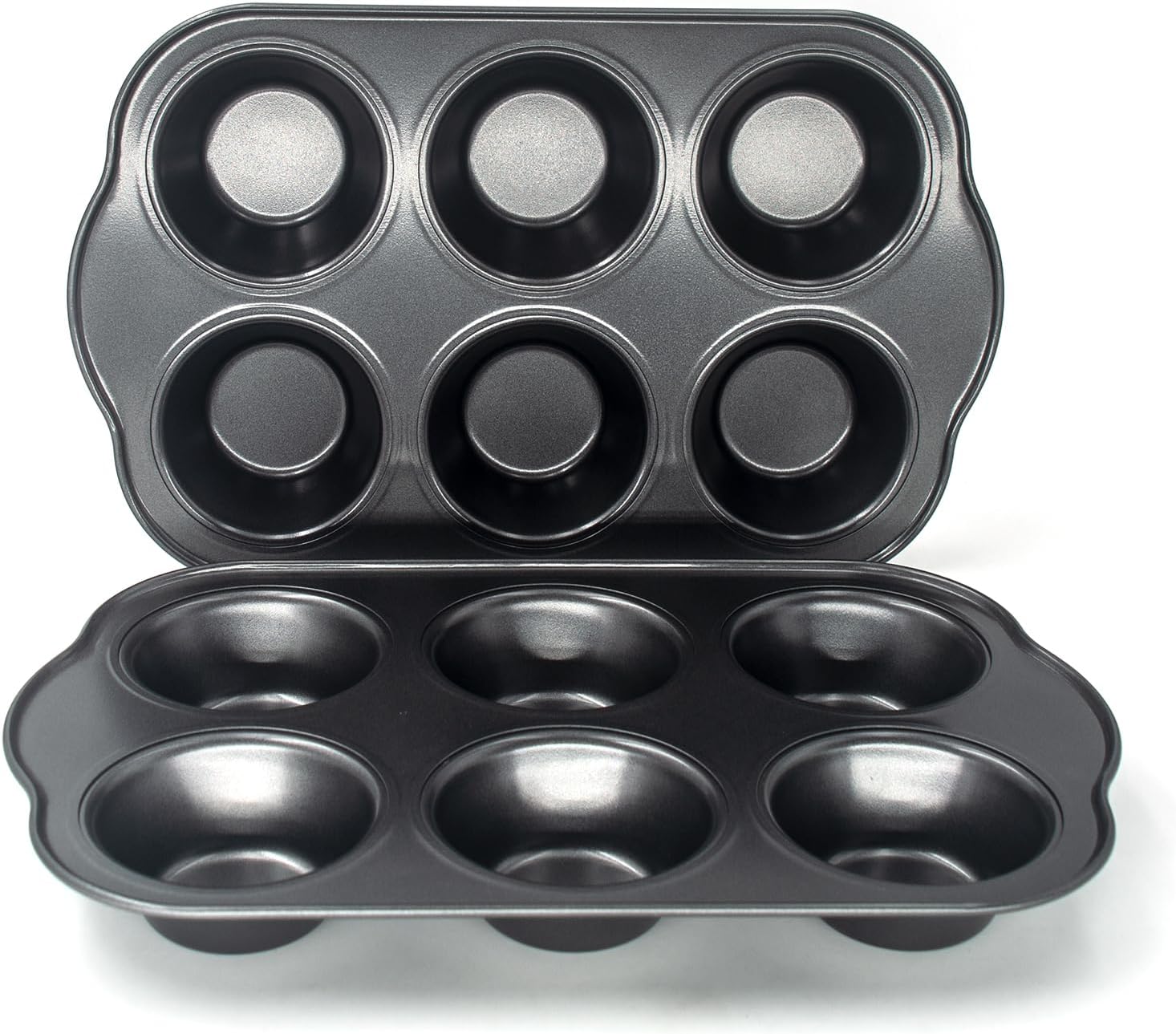 Non-Stick Standard Muffin Pans, 2.95" 6-Cup Set of 2 Baking Pans, Heavy Duty Carbon Steel Tins for Standard Muffins & Cupcakes