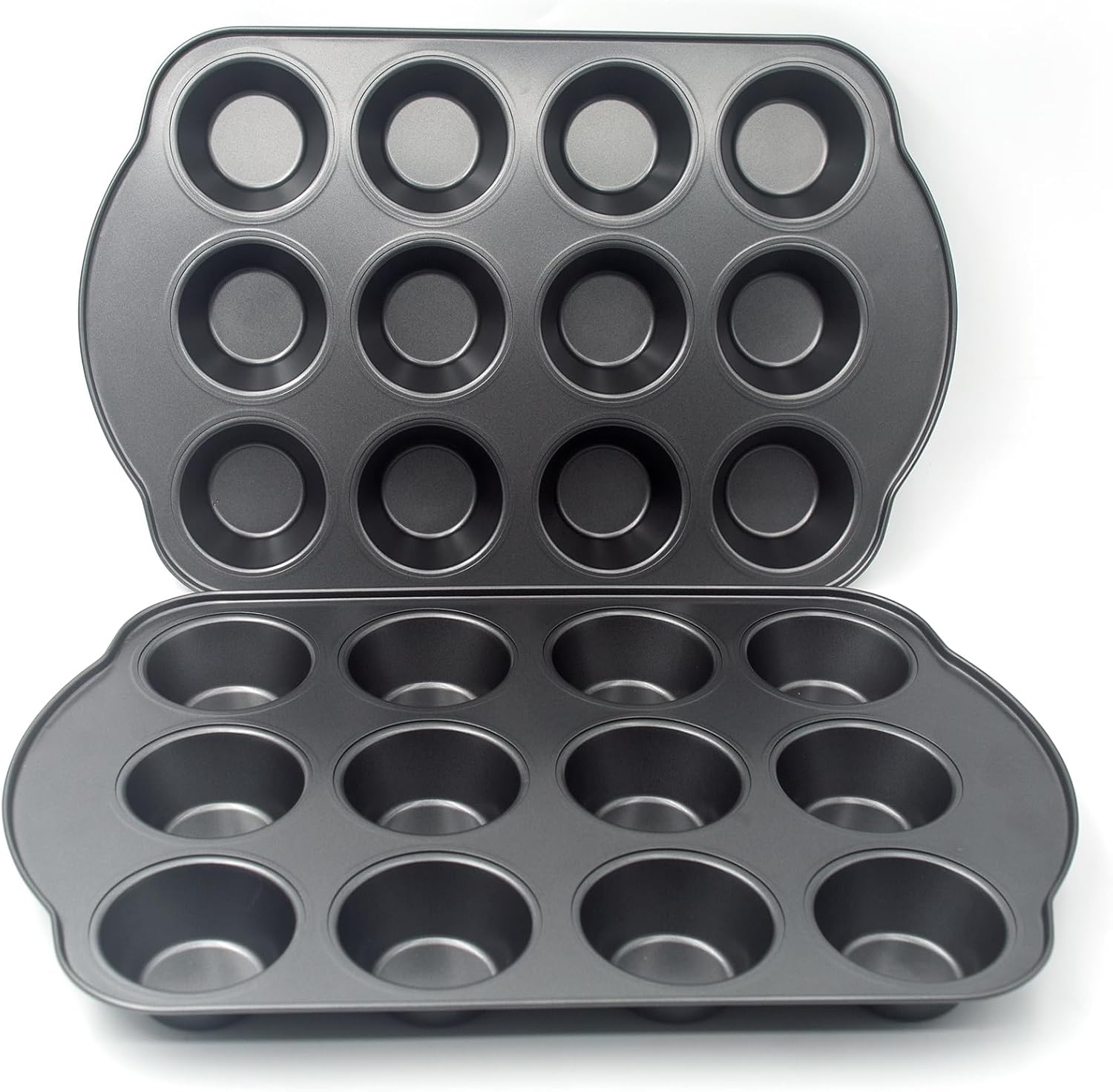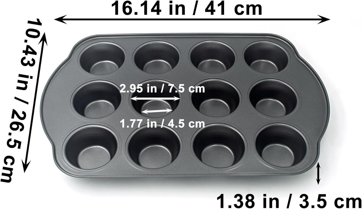 Non-Stick Standard Muffin Pans, 2.95" 12-Cup Set of 2 Baking Pans, Heavy Duty Carbon Steel Tins for Standard Muffins & Cupcakes