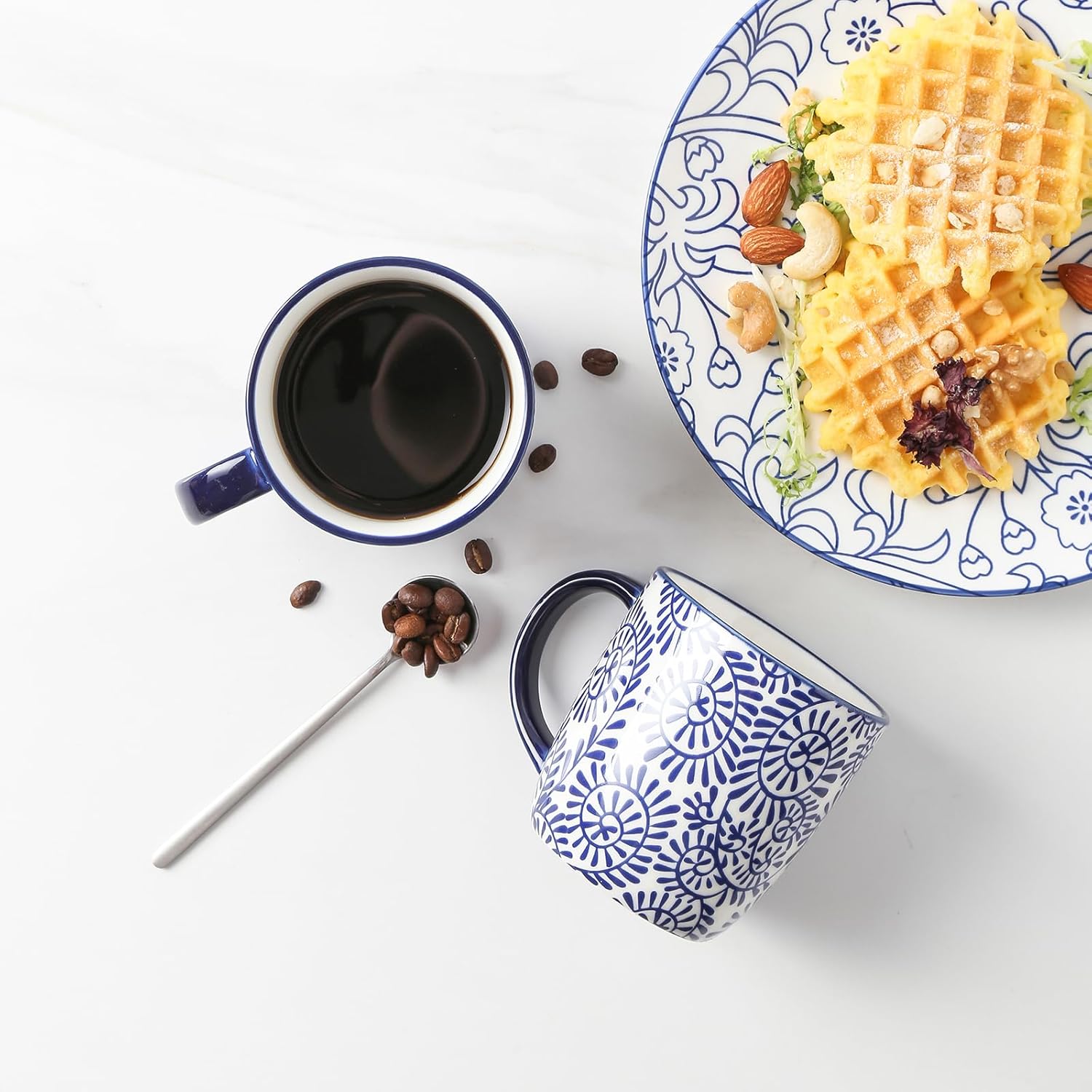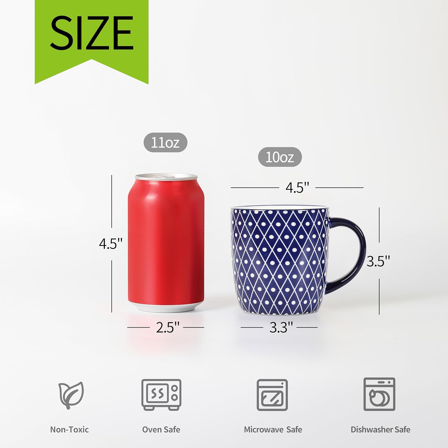 Selamica 10 OZ Coffee Mugs Set of 4, Small Coffee Cups Ceramic with Handle, Coffee Mug for Cappuccino Latte Cocoa Milk Tea, Dishwasher Microwave Safe,Vintage Blue