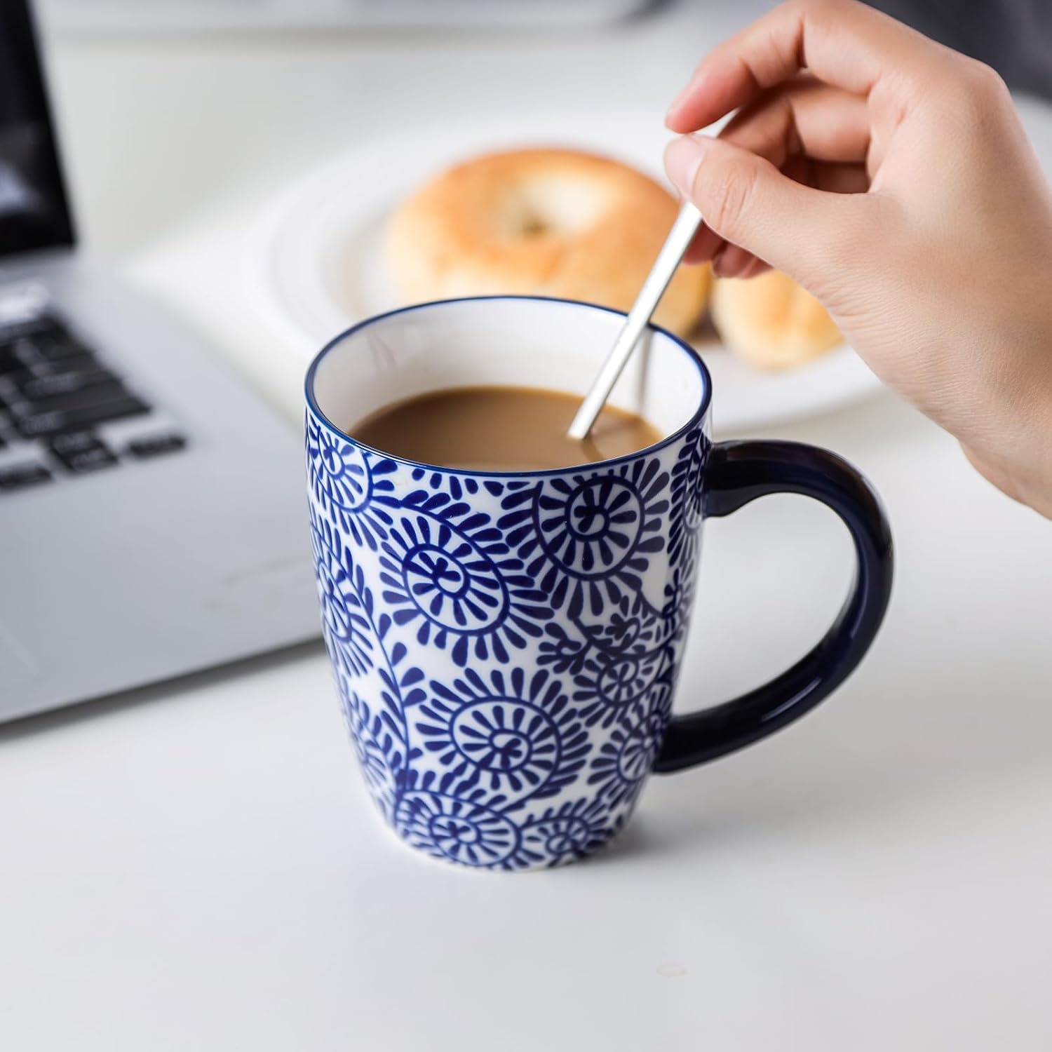 Selamica Ceramic Coffee Mugs Set of 4, 16 OZ Coffee Mug with Handle, Large Coffee Cups for Cappuccino, Tea, Mocha, Cocoa, Dishwasher Microwave Safe, Vintage Blue