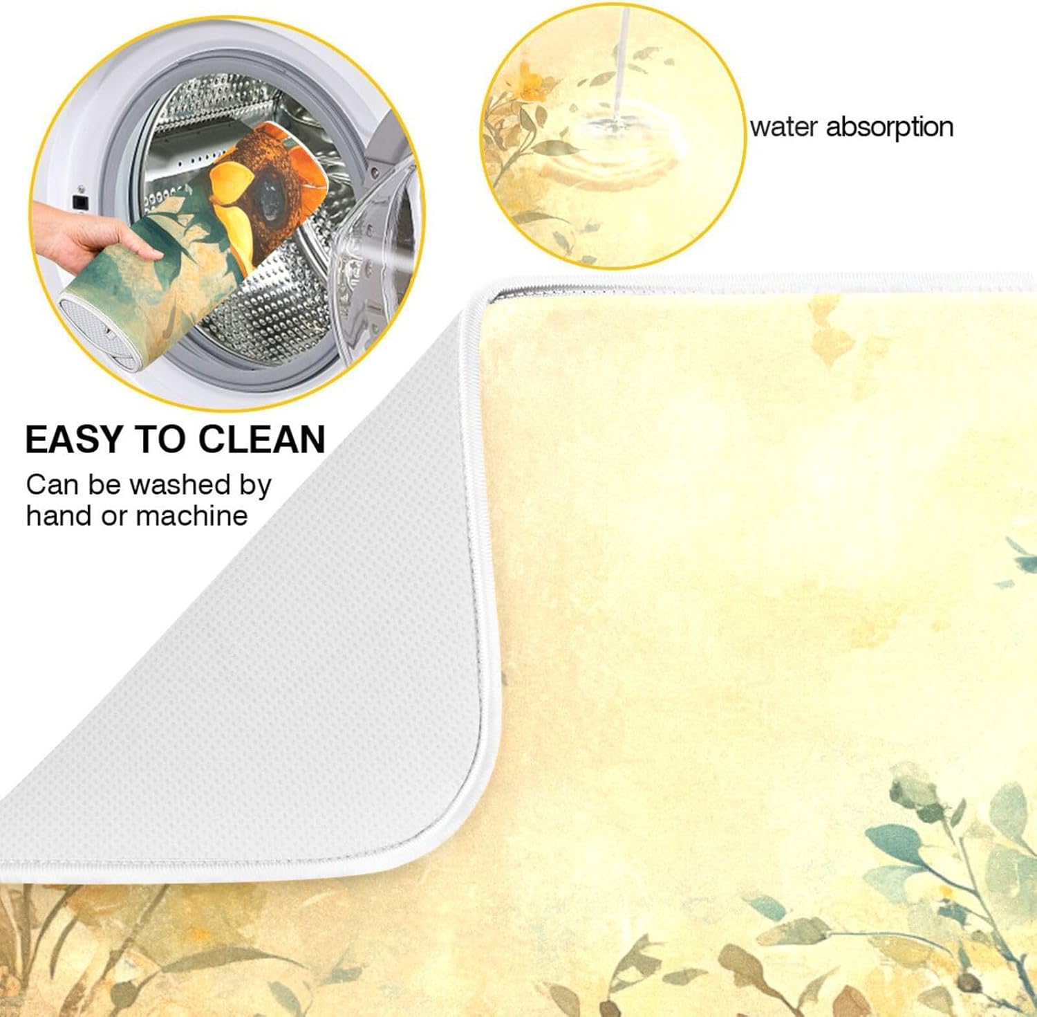 Vintage Floral Sunflowers Dish Drying Mat for Kitchen Counter Super Absorbent Dishes Pad Reversible Microfiber Protector Dish Draining Mats 16x18 inch
