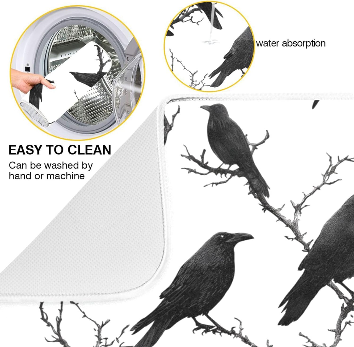 Crows Birds Perched on Branches Dish Drying Mat for Kitchen Counter Super Absorbent Dishes Pad Reversible Microfiber Protector Dish Draining Mats 16x18 inch