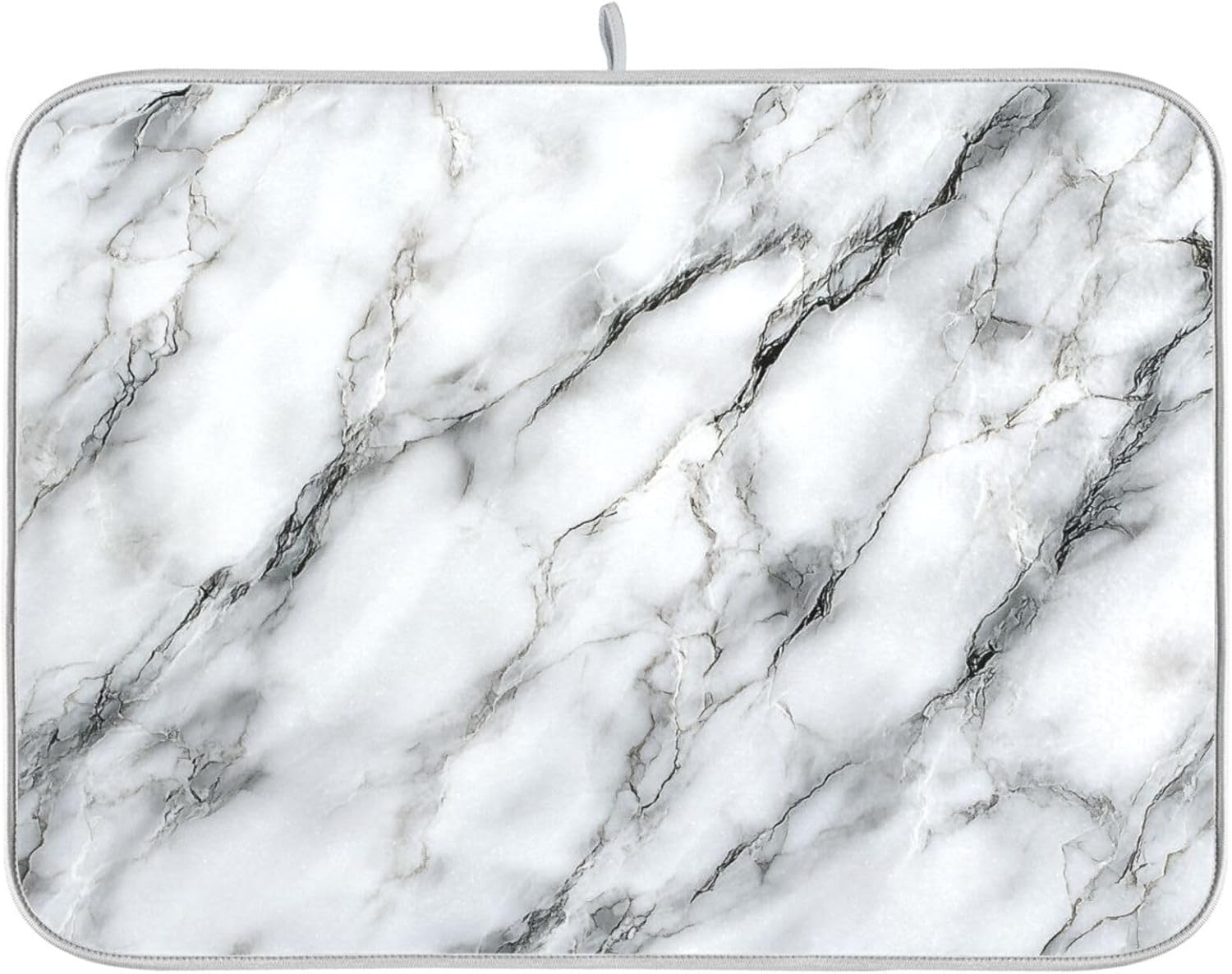 White Marble Pattern Dish Drying Mat for Kitchen Counter Super Absorbent Dishes Pad Reversible Microfiber Protector Dish Draining Mats 16x18 inch