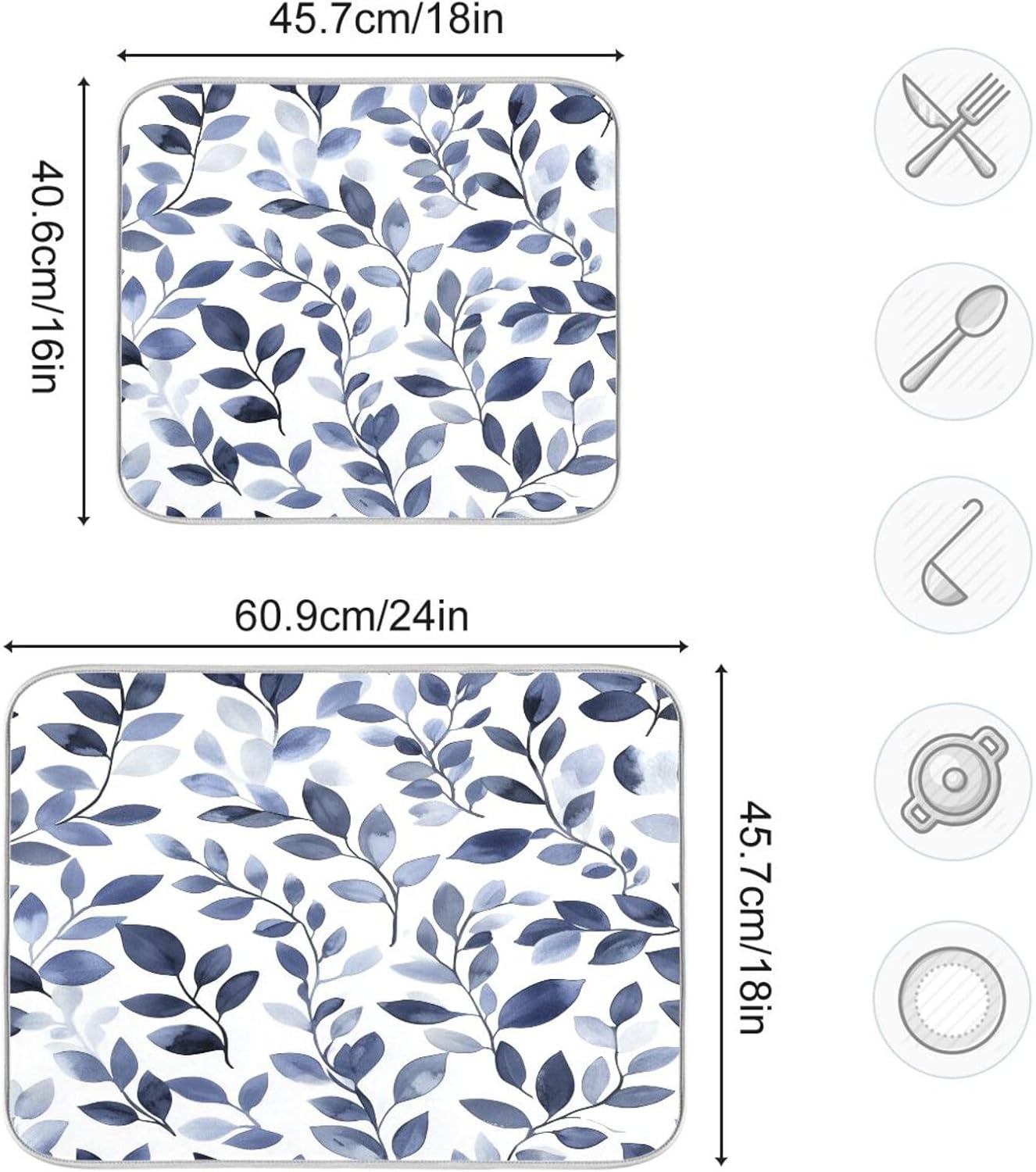 • 【Perfect Size】: This Dish Mat size 16x18inch / 18x 24 inch fits most counters, which can hold many of your dishes. Beautiful print on surface side and reverses to a solid color. When you don't need it, you can just fold it into a small piece for storage.