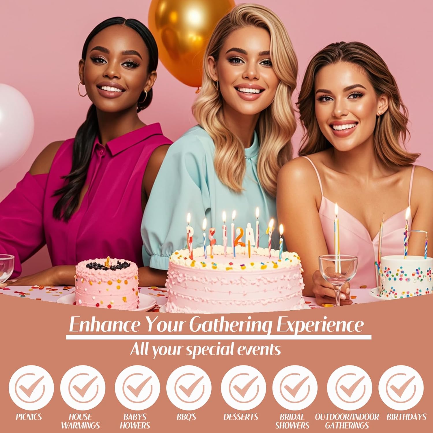 • 🏕︎Wide Appliaction:Pink dessert plates have multi functional purposes, suitable for the cakes, desserts, dry cakes, snacks, muffins, suitable for various parties, such as birthday parties, emo party, weddings, graduation ceremonies and other parties. they can also be used for daily family dinners and picnics.