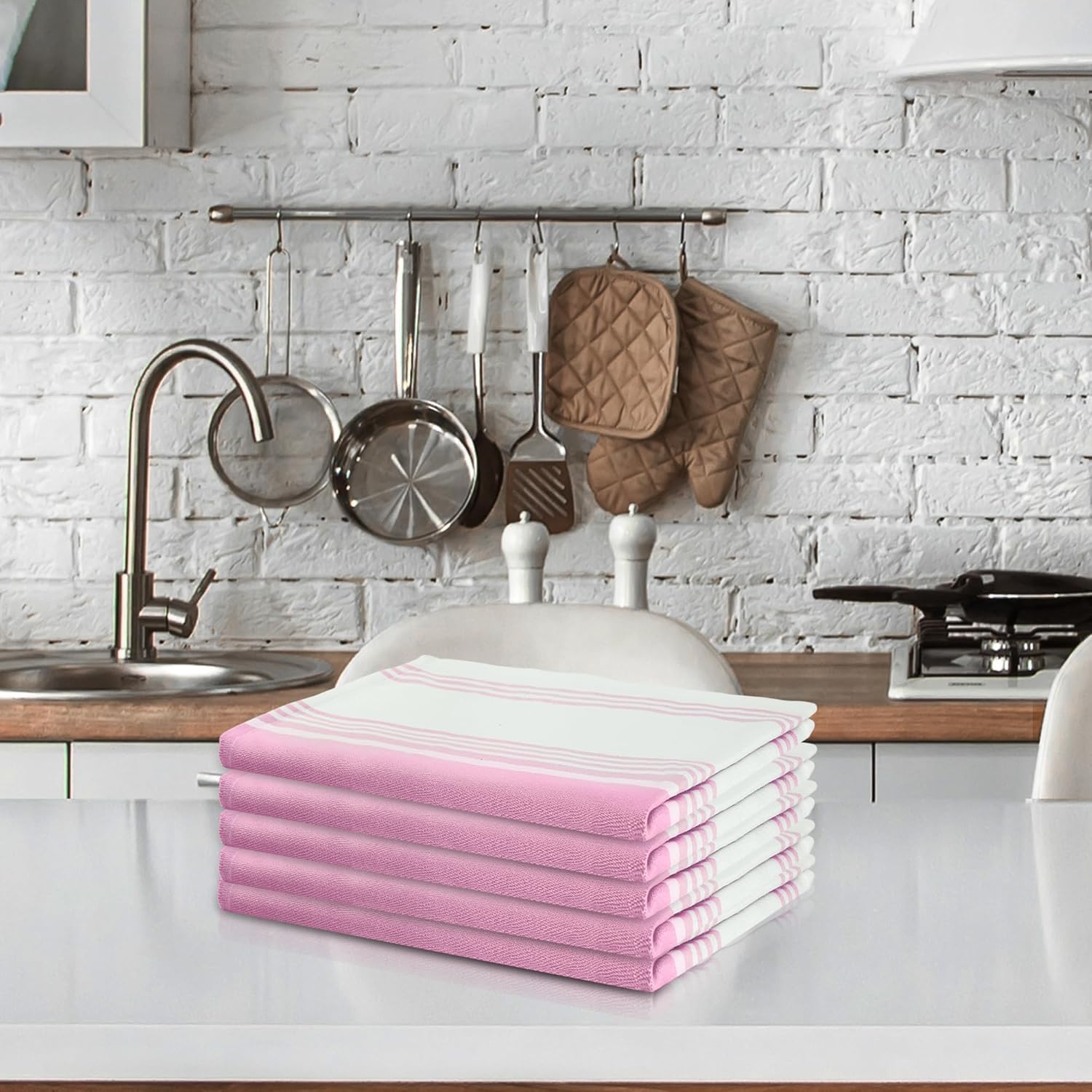 Urban Villa Kitchen Towels 100% Cotton Pack of 3, Highly Absorbent Quick Drying Super Soft Premium Dish Towels for Kitchen with Hanging Loop Hand & Tea Towels - 20x30 Inch, (Pink & White, Striped)