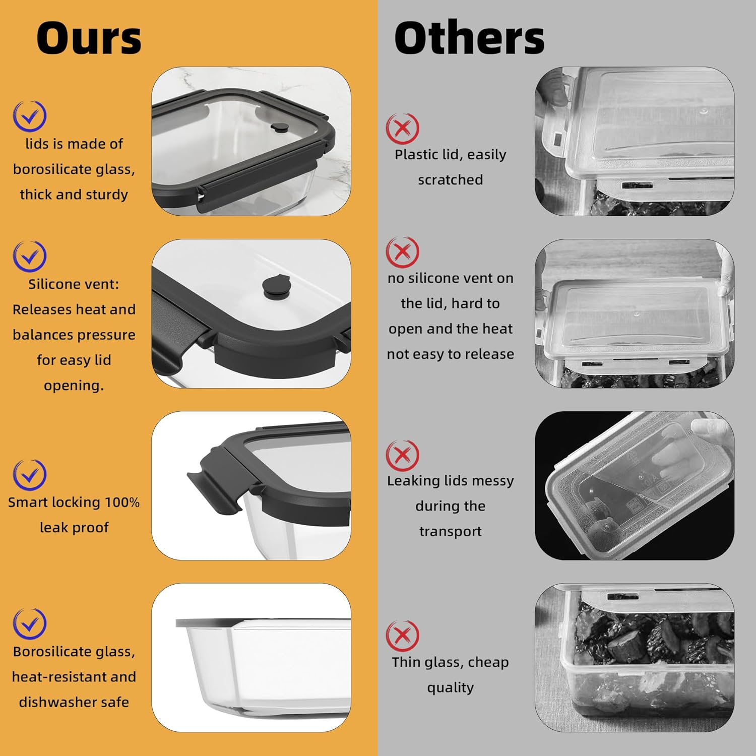 • 5️⃣ Space-Saving 3-Pack for Everyday Use Includes three 35oz glass containers with vented lids, perfect for storing leftovers, preparing meals, or taking lunch to work or school. Stackable and transparent for easy organization — durable, reusable, and toxin-free for a healthy lifestyle.