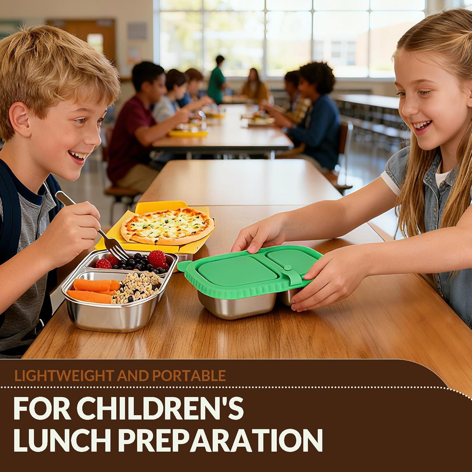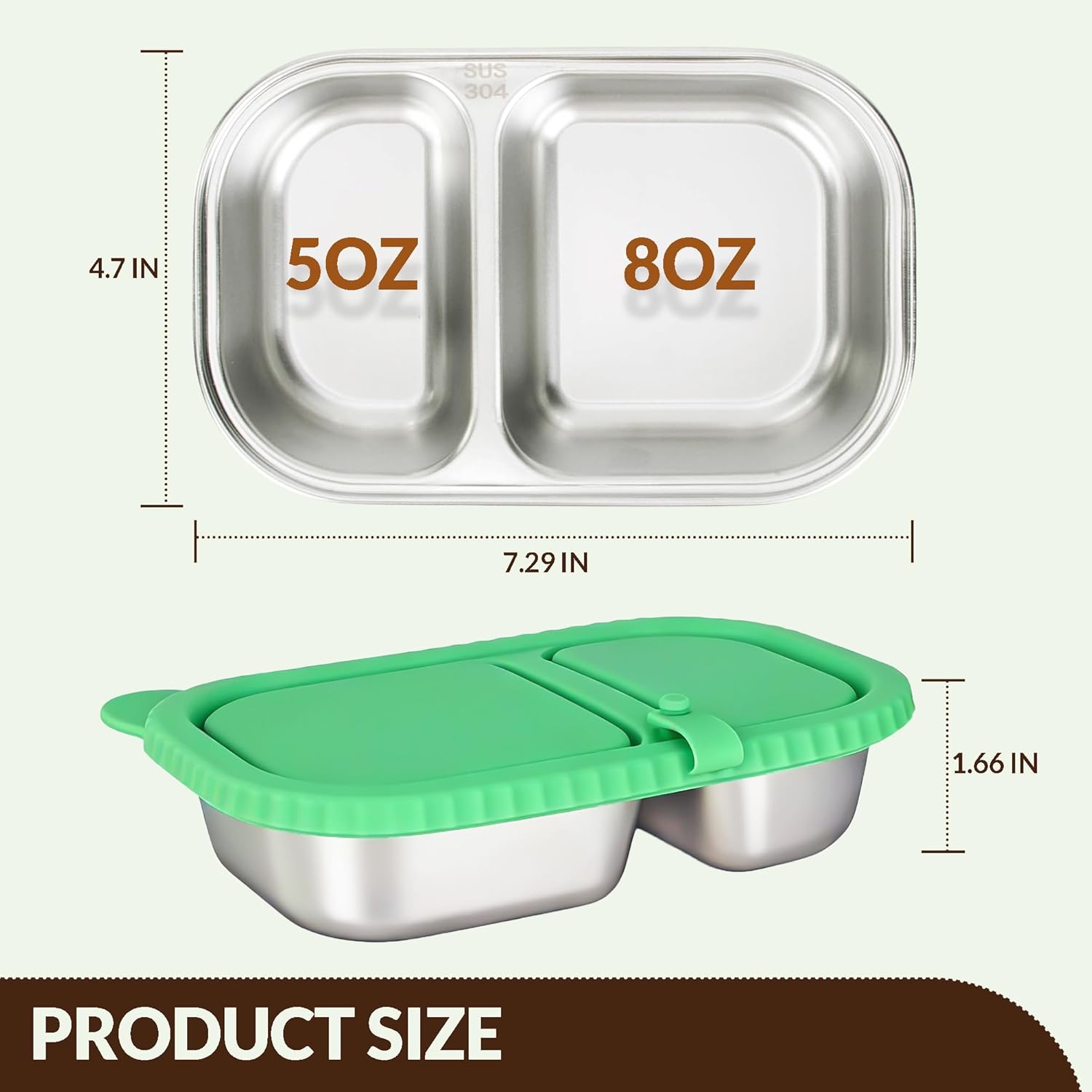 HI-REEKE 13 OZ Stainless Steel Snack Containers with Lids, 4 PCS Reusable Double Compartments Metal Snack Packs for Sauce