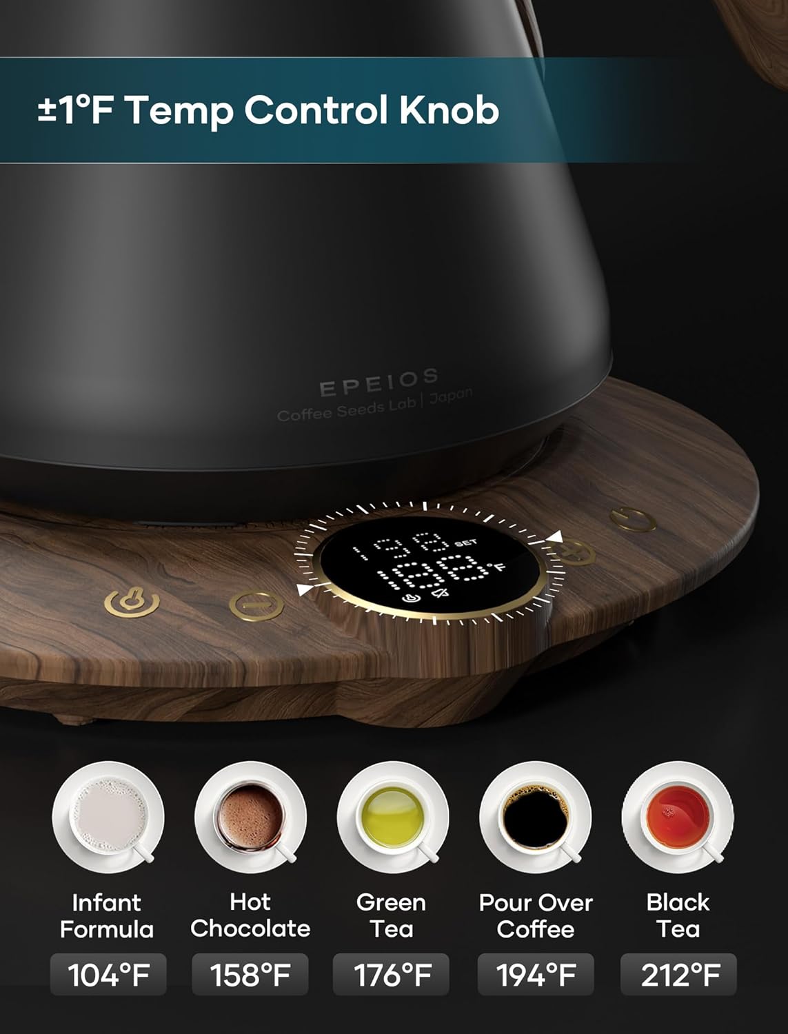 • ±1℉ Precise Temperature Control – Smart power adjustment keeps water within ±1℉ of your target, so every brew is café-precise and full of flavor.