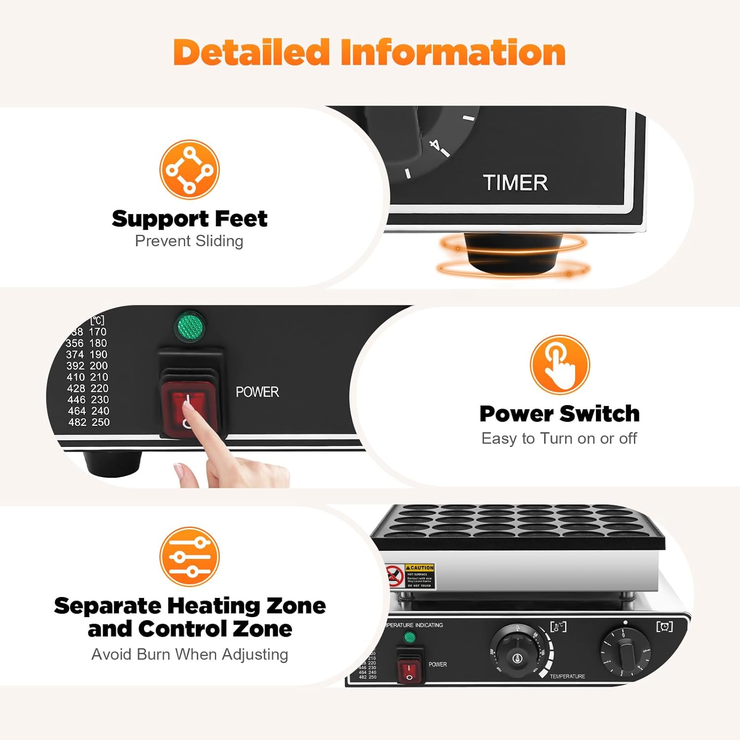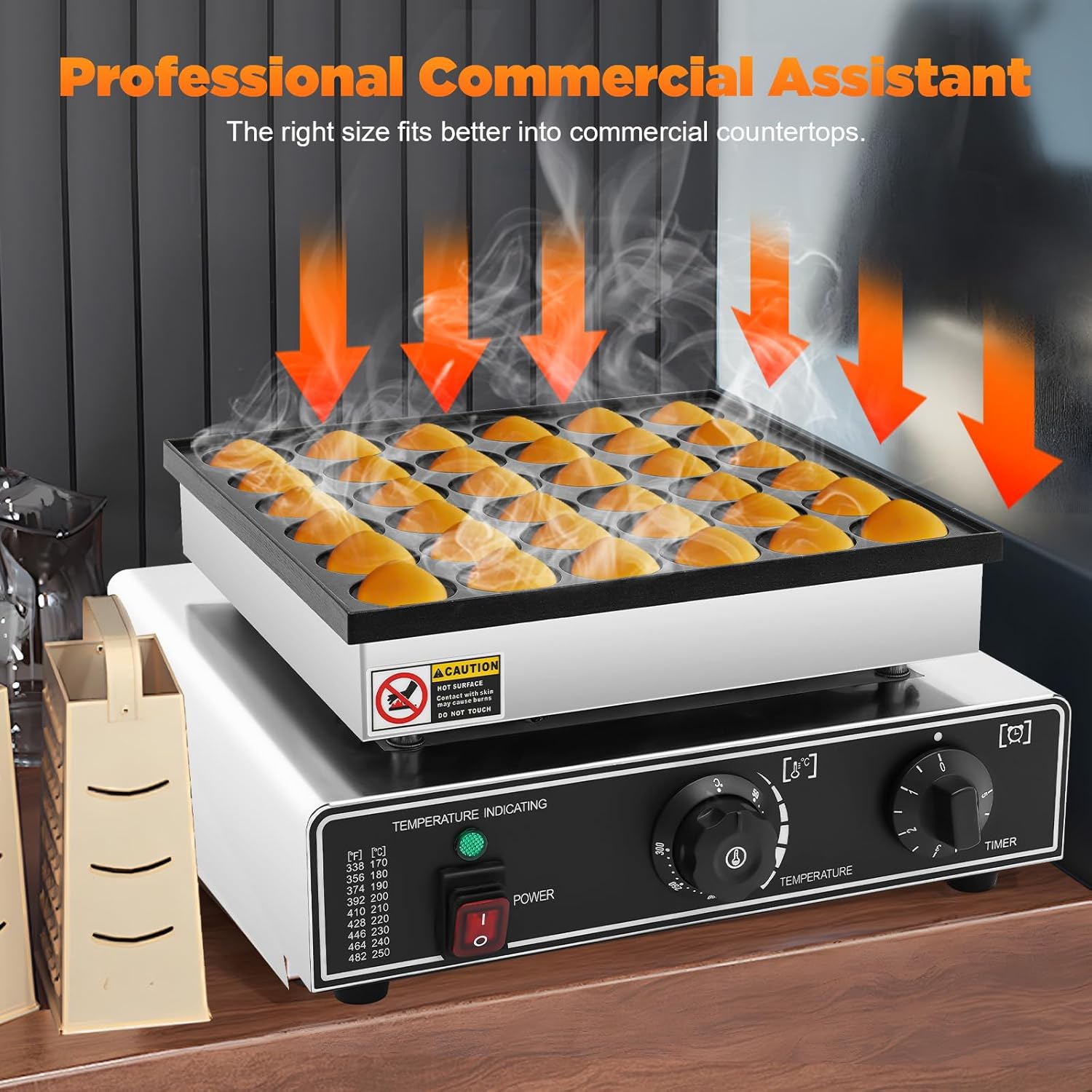 • 【High Efficiency】The mini pancake maker electric, strong power (950W), allow this mini pancake griddle pan nonstick to heat evenly and quickly, producing delicious egg puffs (36 round waffles per time)of uniform color for about 4 minutes.