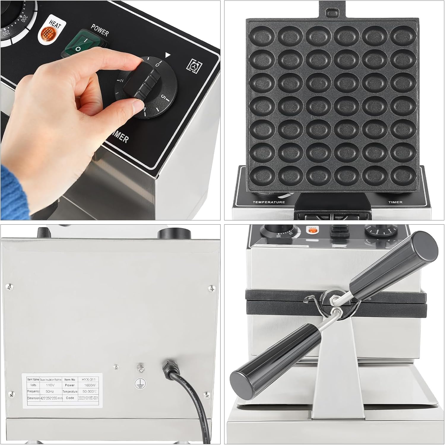 • 【Thoughtful Design】 You can adjust the time from 0-5 minutes and the temperature between 122-572°F with the knobs to accommodate making different flavors as well as types of waffles.