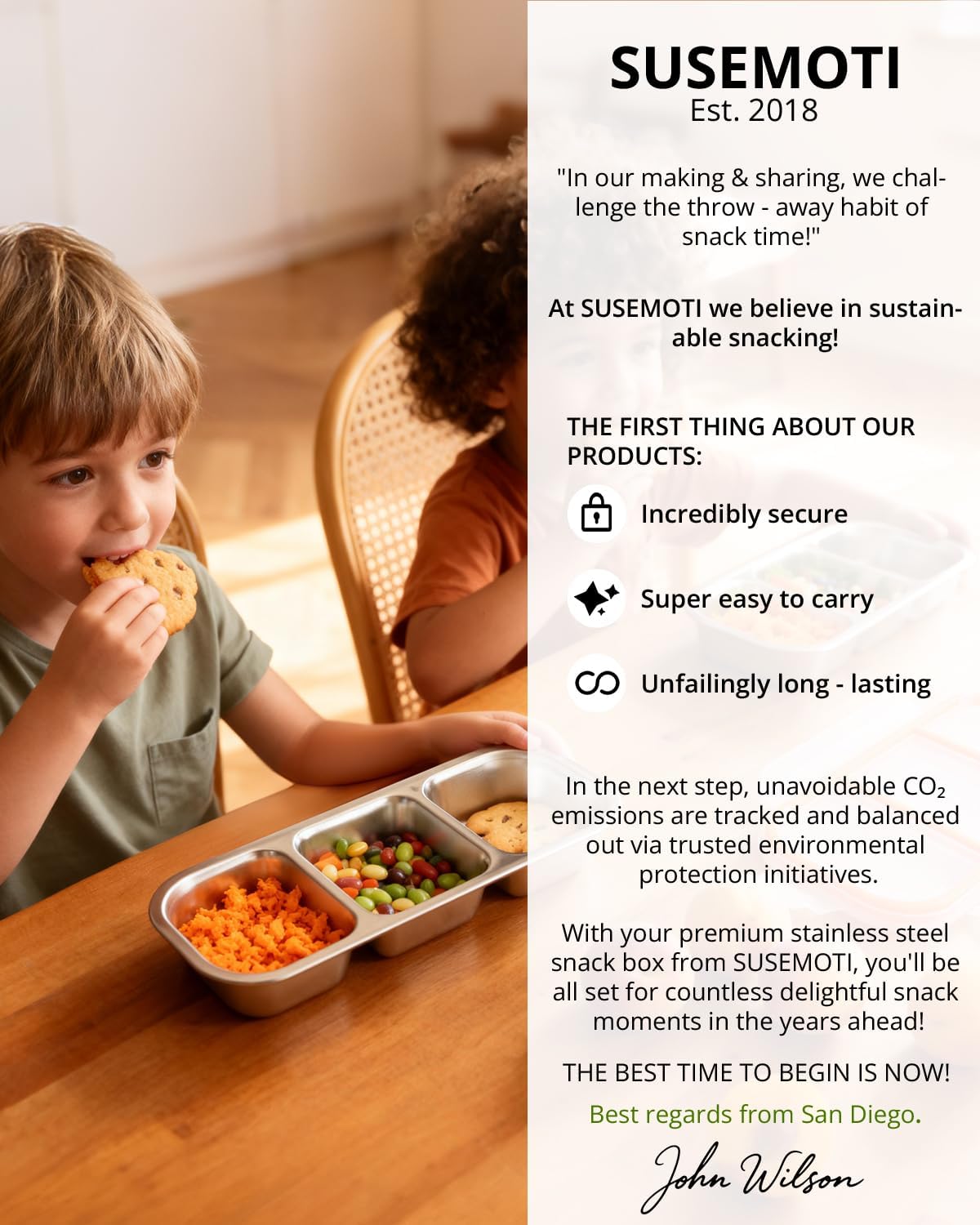 • Perfect as Snack Containers for Kids & Adults: Whether you need snack containers for kids' school lunches or a stainless steel bento box for your own meals, this set adapts to all needs. From daily use to travel, this versatile duo makes healthy eating convenient and organized for the whole family.
