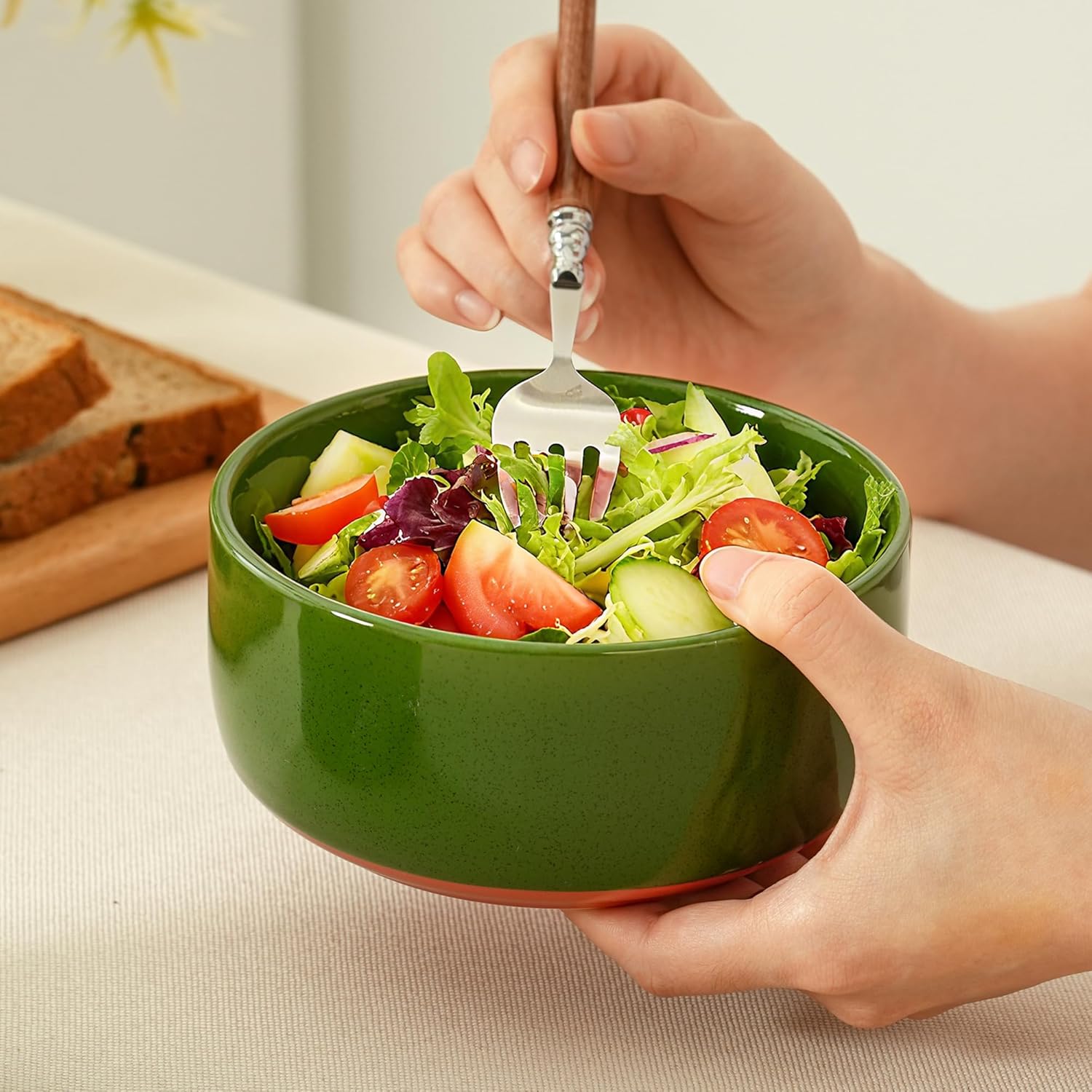 Stoneware Cereal Bowls Set of 4, 6 Inch Deep Bowl for Oatmeal, Soup, Ceramic Bowls Sets, Microwave Safe, Dishwasher Safe, Versatile for All Seasons, Forest Glaze Green