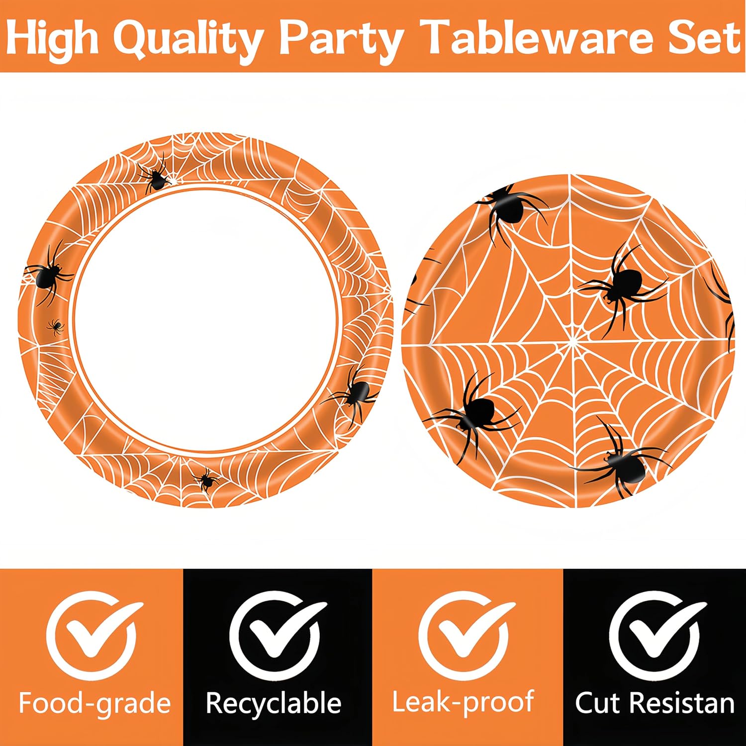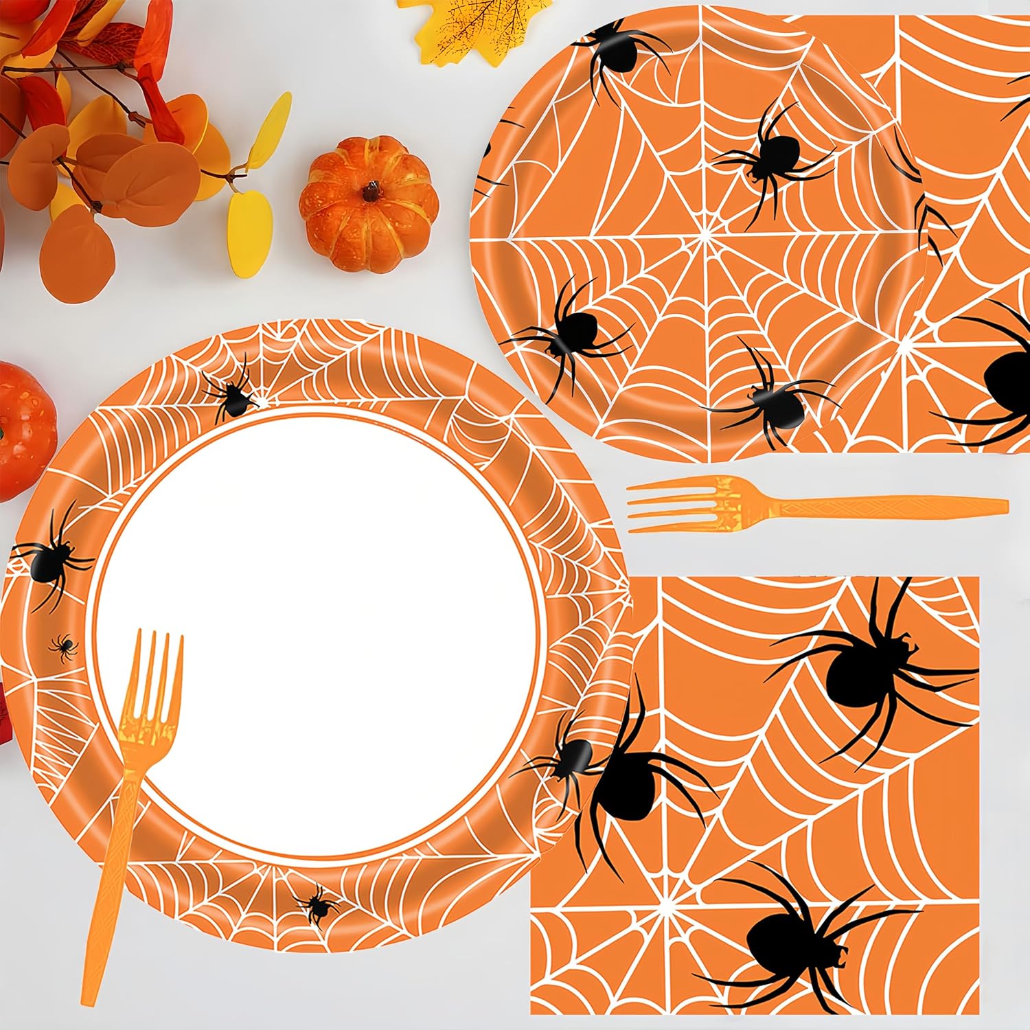• Set for 24 Guests: Halloween party supplies is perfectly tailored for 24 people, including 24 9-inch dinner plates,24 7-inch dessert plates,24 6.5-inch soft napkins (for easy cleanup), and 24 black plastic forks, start celebrating your orange spider web themed gathering