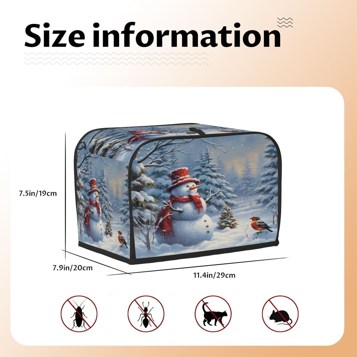 • Kitchen Essential - This Xmas decorative toaster cover features an Snowy Forest Christmas Tree Snowman Bird,White design, adding a touch of elegance to your kitchen décor. Toaster cover 2 Slice wide slot with top handle design are easy to take off and on, so you can access and use your toaster quickly. Hang it on a hook when using the toaster to avoid countertop clutter. Side pockets are easy to hold handy tools like toaster tongs, jam spreader knife, recipe, leftover bread.